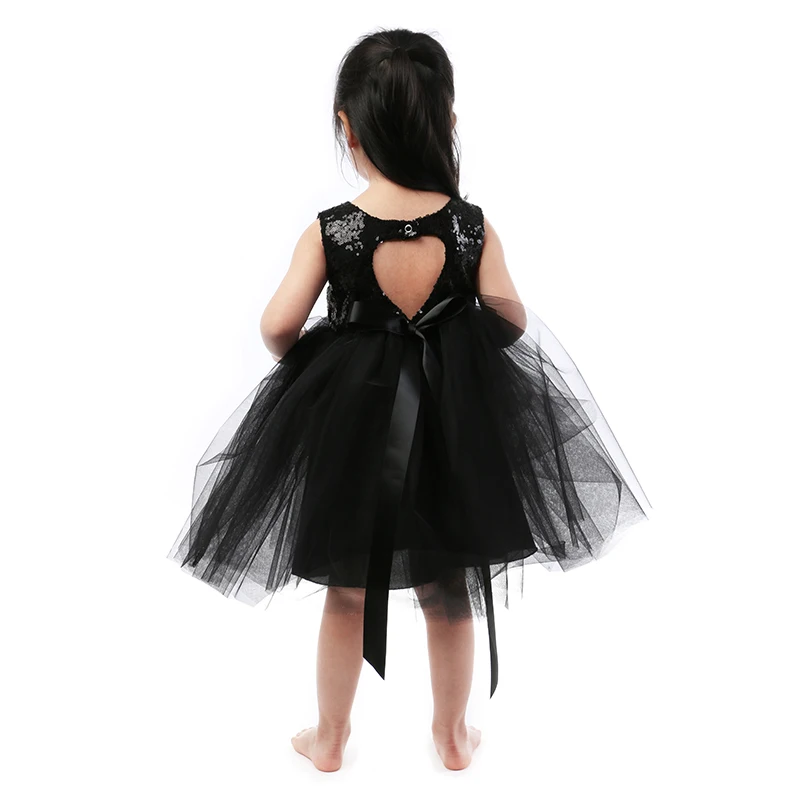 Hot Sale Kids Party Clothes Solid Black Sequin Bodices Girls Baby Tutu Skirt Dress Cotton Children Summer Dress Plaid Casual Bow