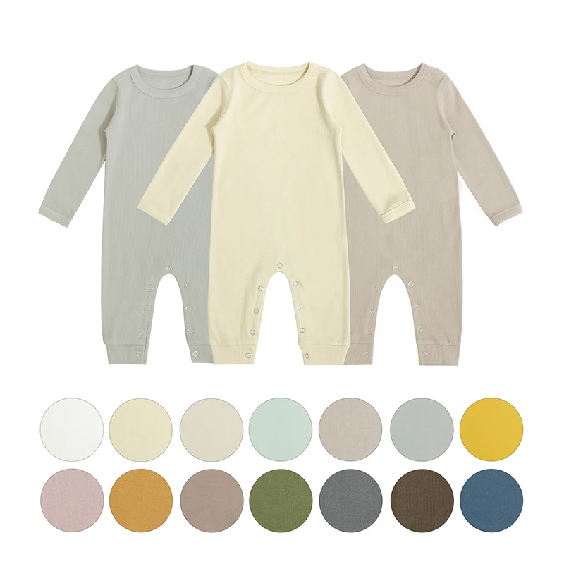 Factory Direct Newborn Infant Toddler Bodysuit Spring Long Sleeve Soft Ribbed Organic Cotton Baby Bubble Romper