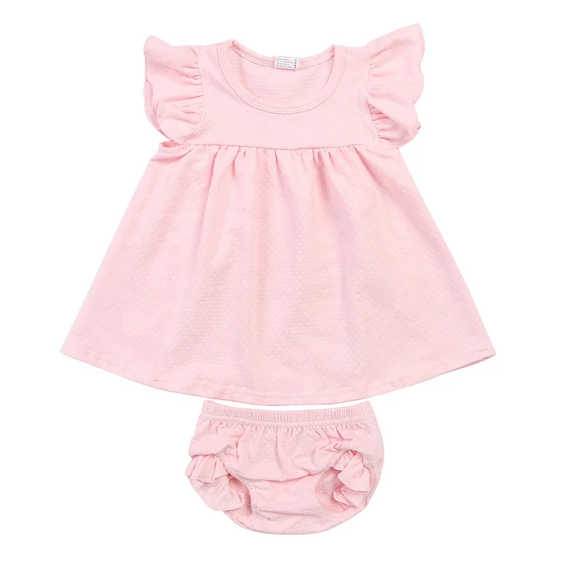Wholesale Kids Clothing Set Baby Clothes Suits Tunic Top&Bloomer Children Solid Pink Outfits Baby Clothing Sets