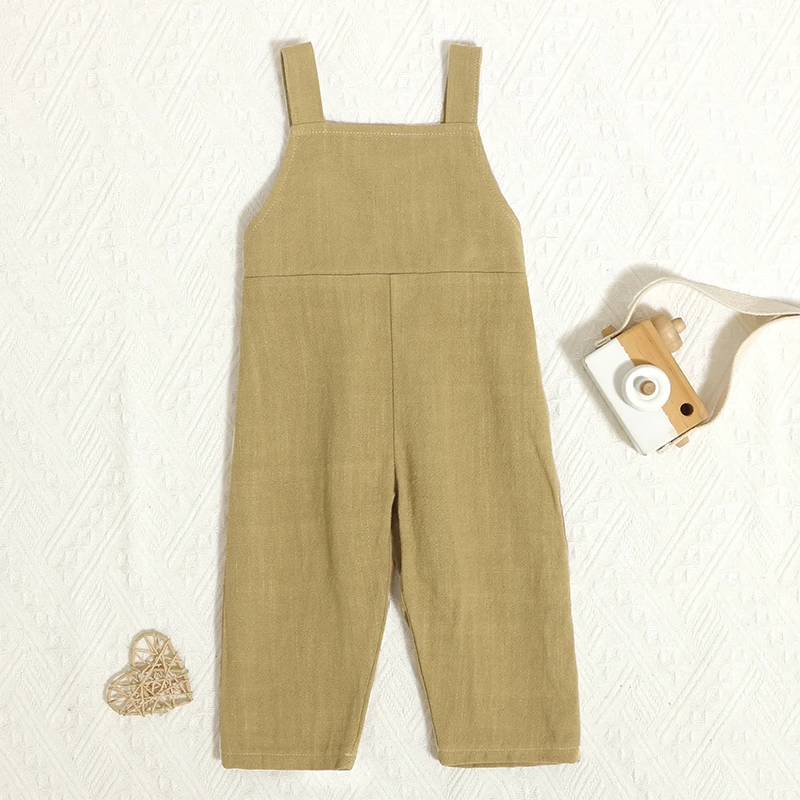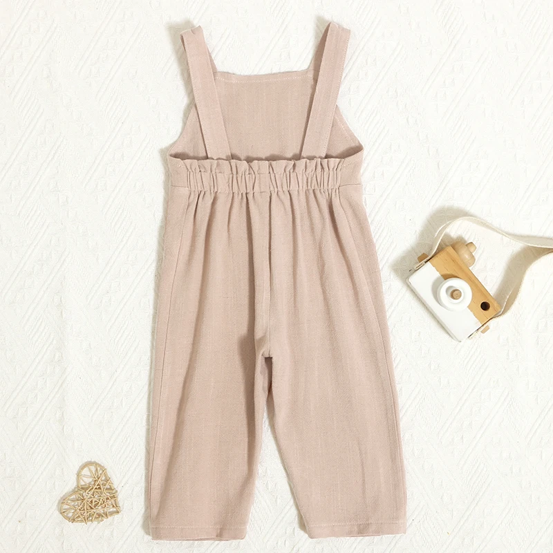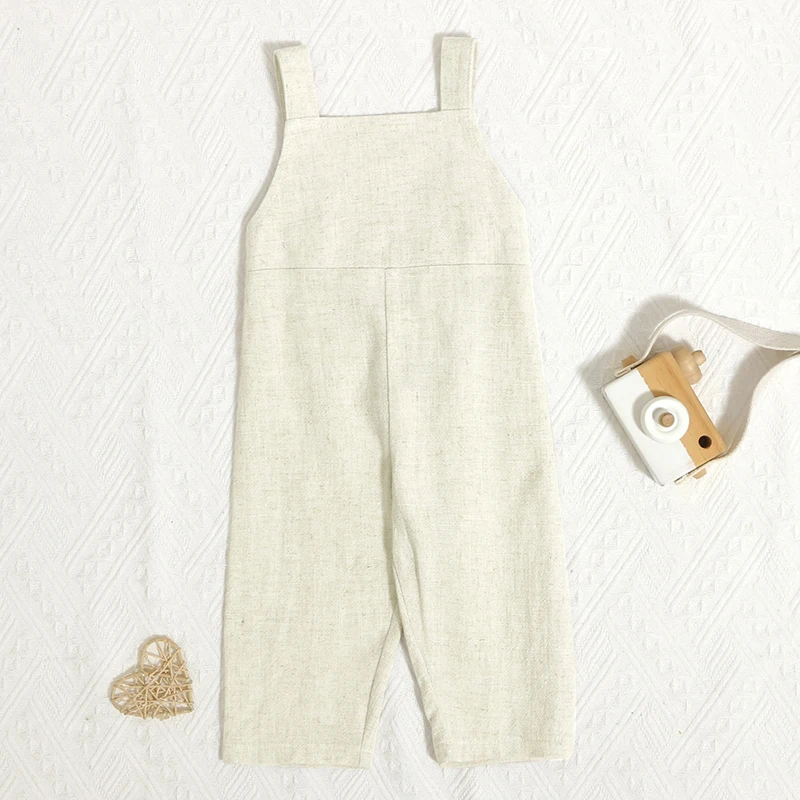 Latest Fashion Summer Baby Rompers Linen Blend Kids Overalls Button Strap Design Neutral Overalls Baby Carrier