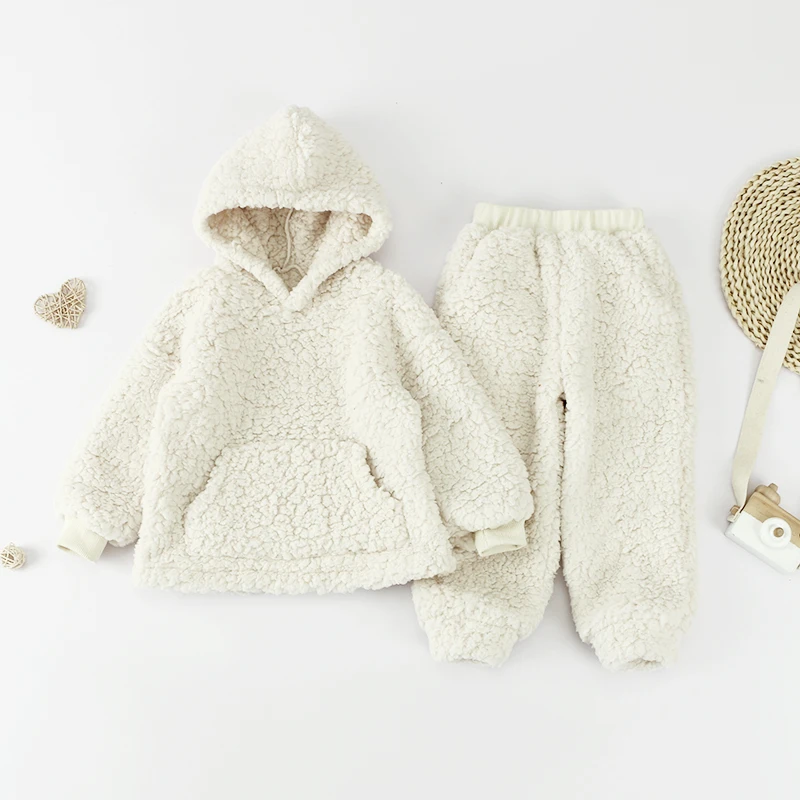 Newborn Winter Baby Clothes Set Soft Plush Outfits Hooded 2 Pieces Set Pure Infants Clothing Outfit Baby Girl's Outfits