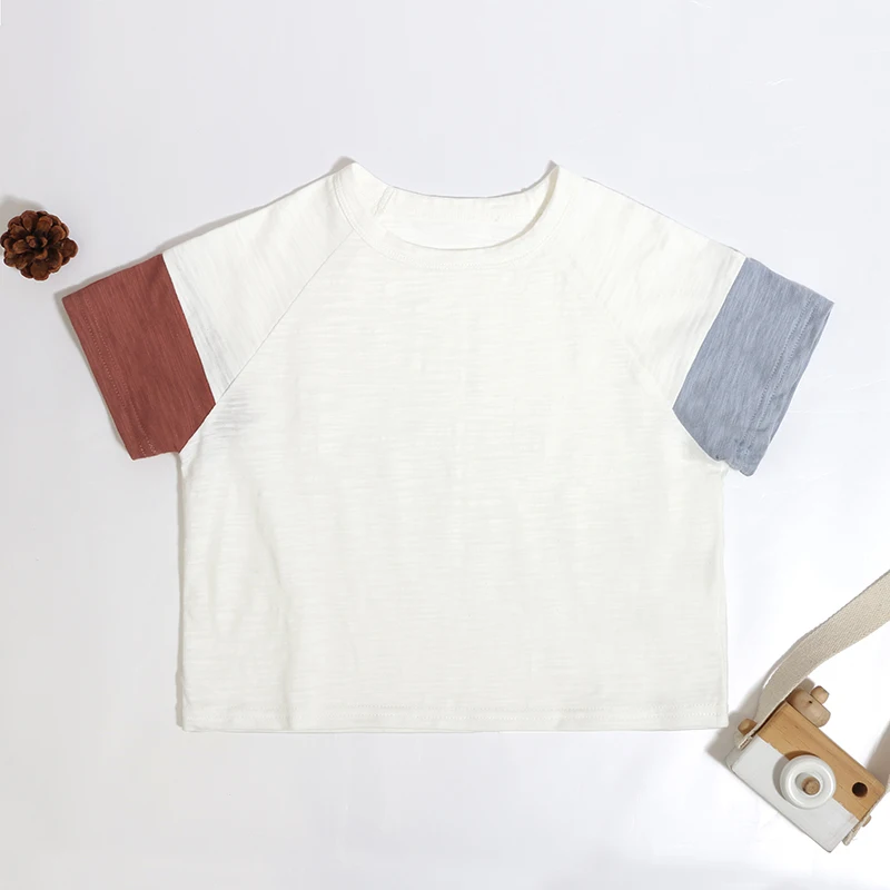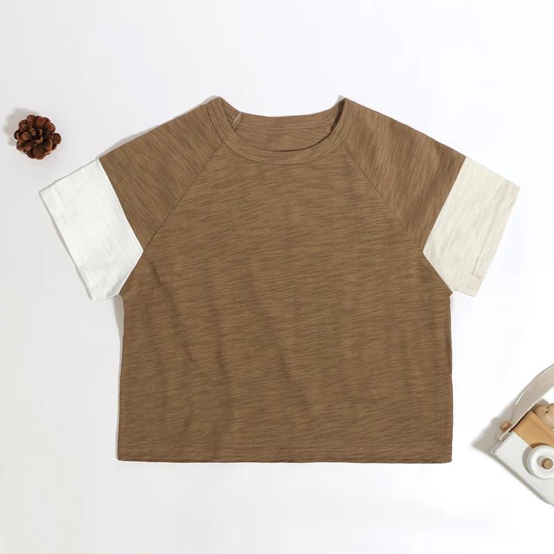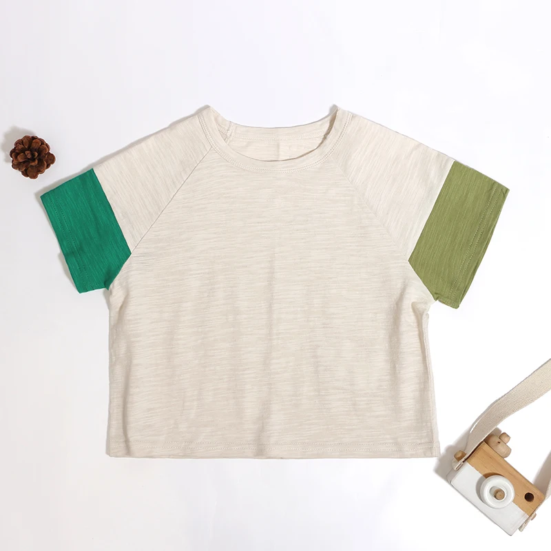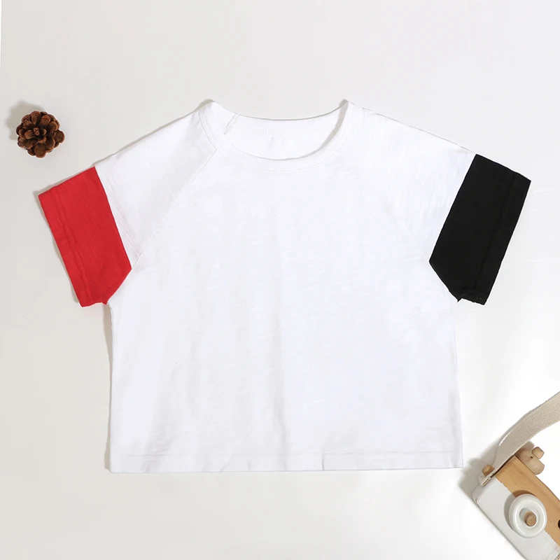 New Fashion Summer Children Clothes Organic Slub Cotton Short Sleeves Color Clashing Design Kids Tops Crew Neck Kids T-Shirt