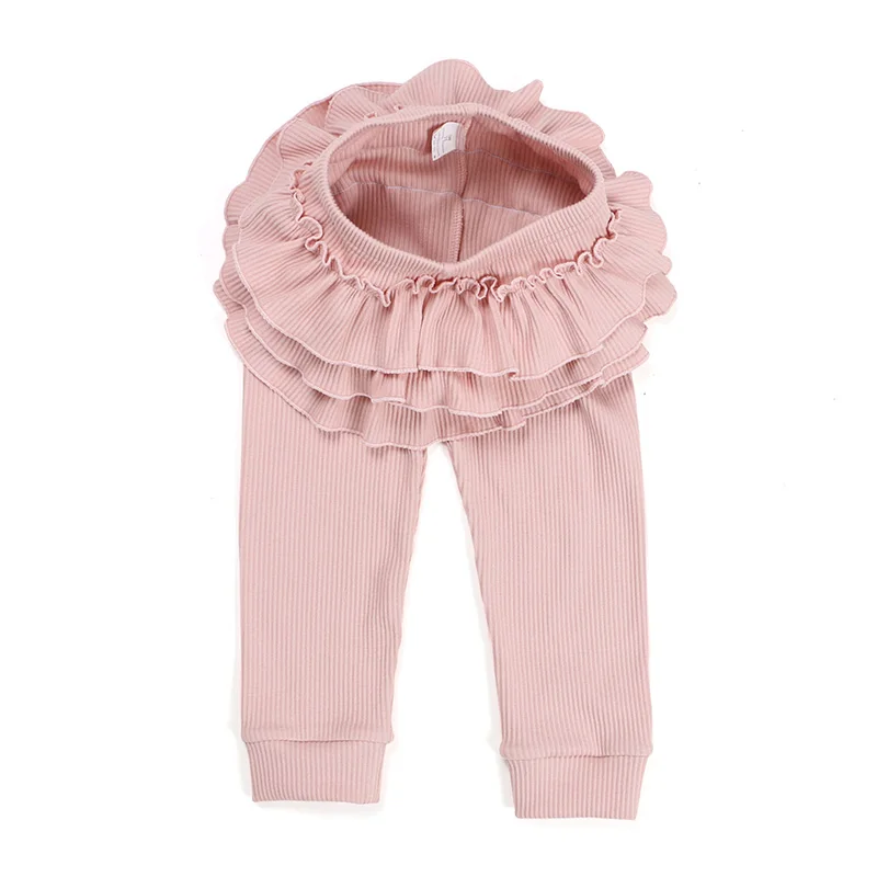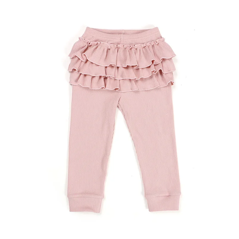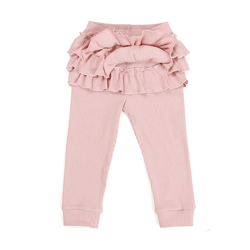 Wholesale Boutique Children Clothing Baby Daily Clothes Kids Ribbed Leggings Girls Ruffled Leggings Pants