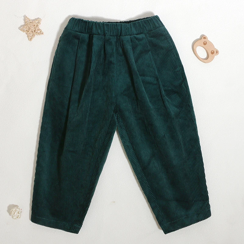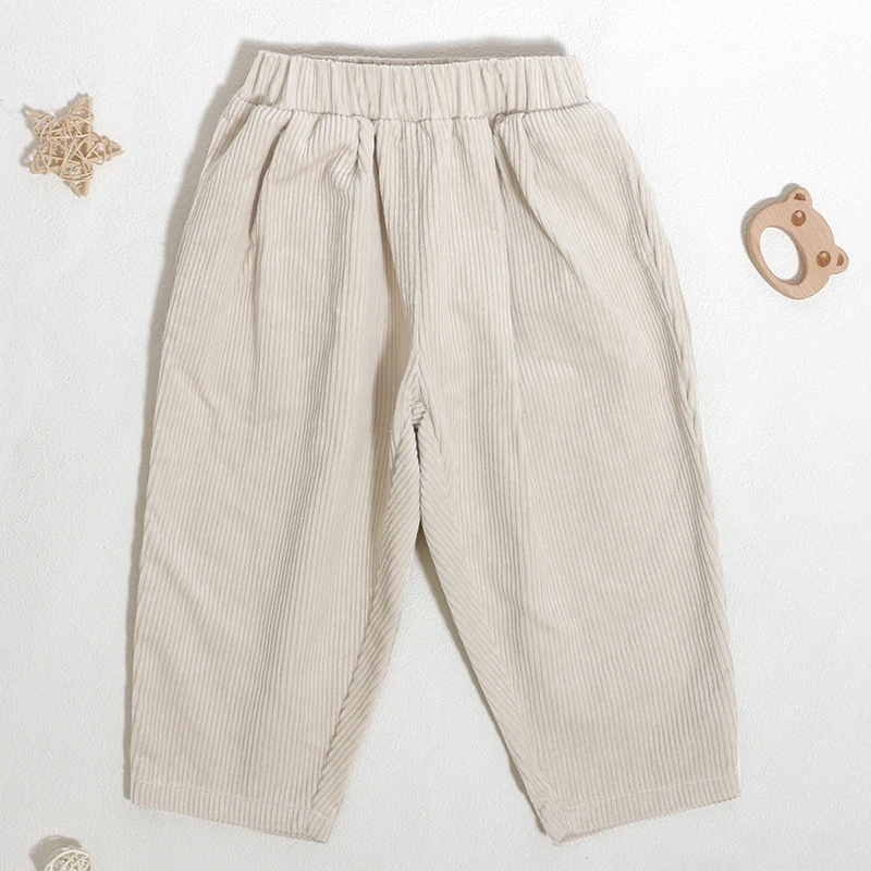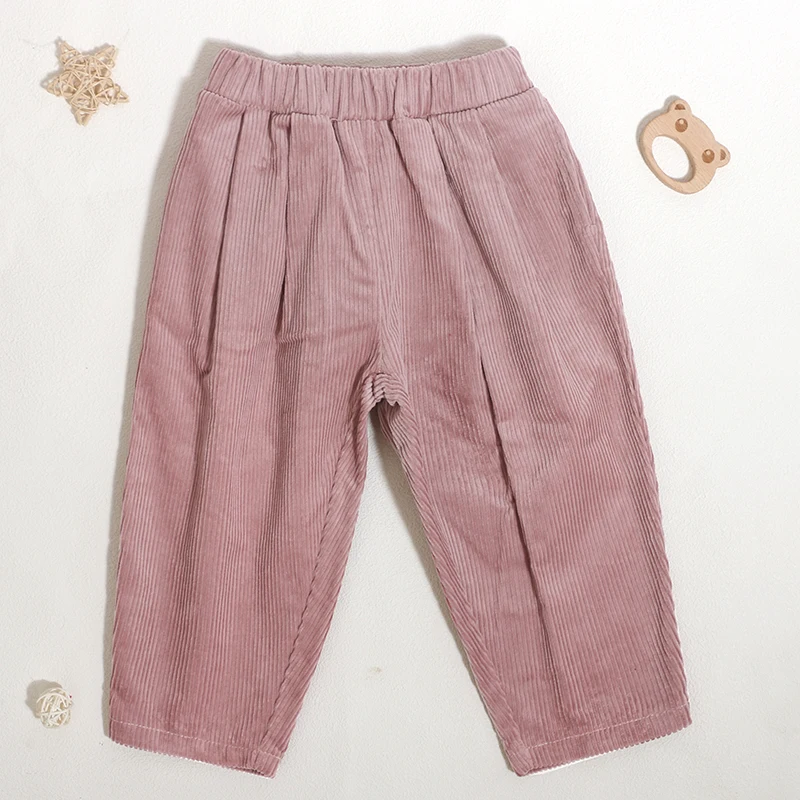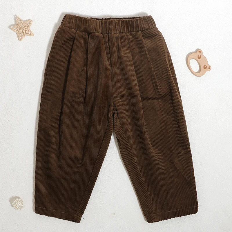 Customized Logo Classic Design Kid Corduroy Loose Bottom 100%Cotton Skew Pocket Toddler Trouser Solid Color Baggy Boy Girl Pant