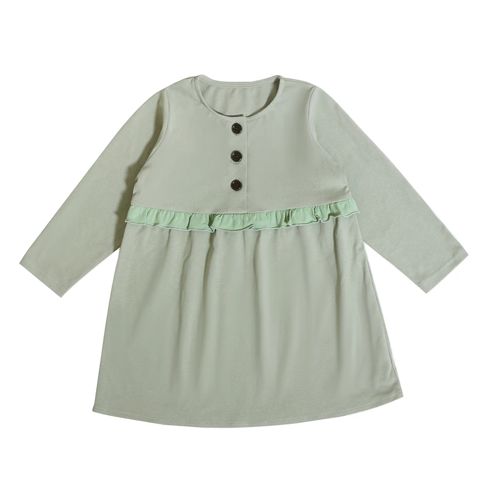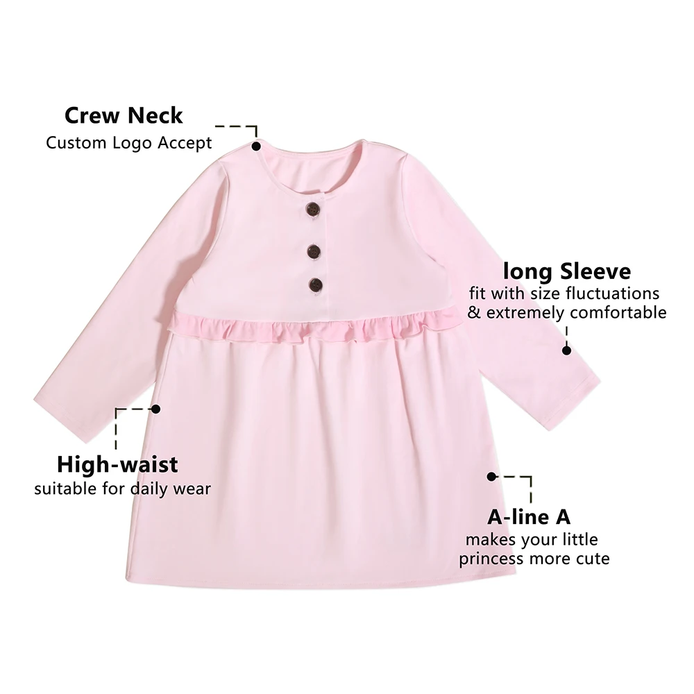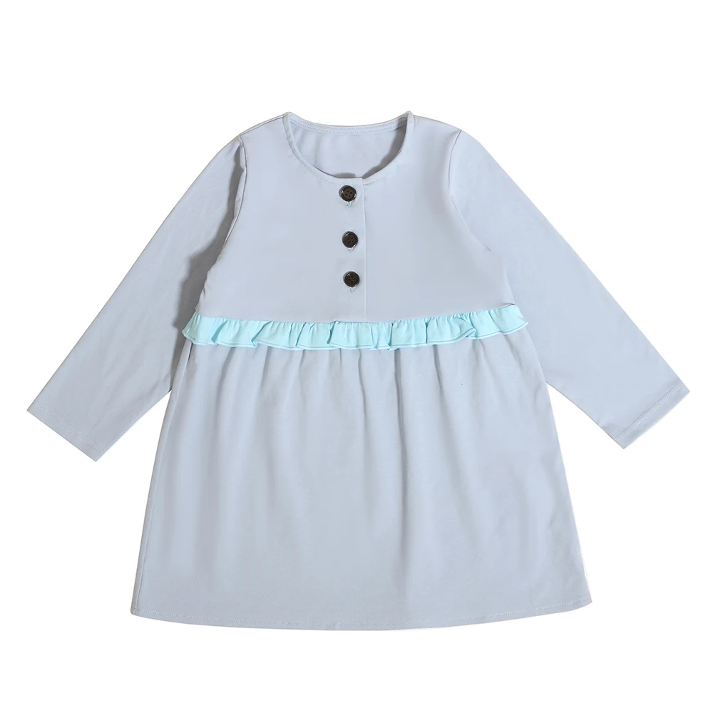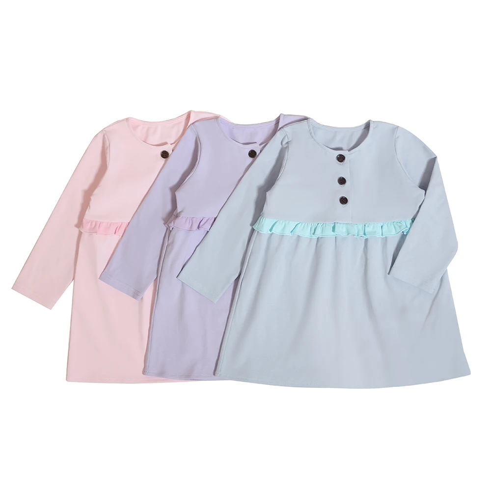 Wholesale Cute Princess Baby Girl Casual Cotton Clothing With Button Long Sleeves Autumn Dresses Kids Girls 3 Years