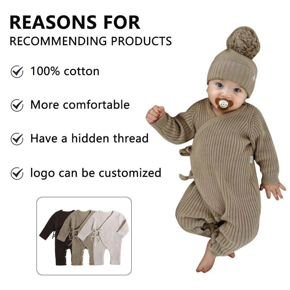 Hot Sale Baby Products Clothes Full Sleeve 100% Cotton Plain Knit Strip Winter Warm Baby Rompers