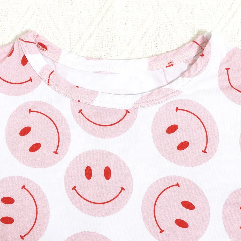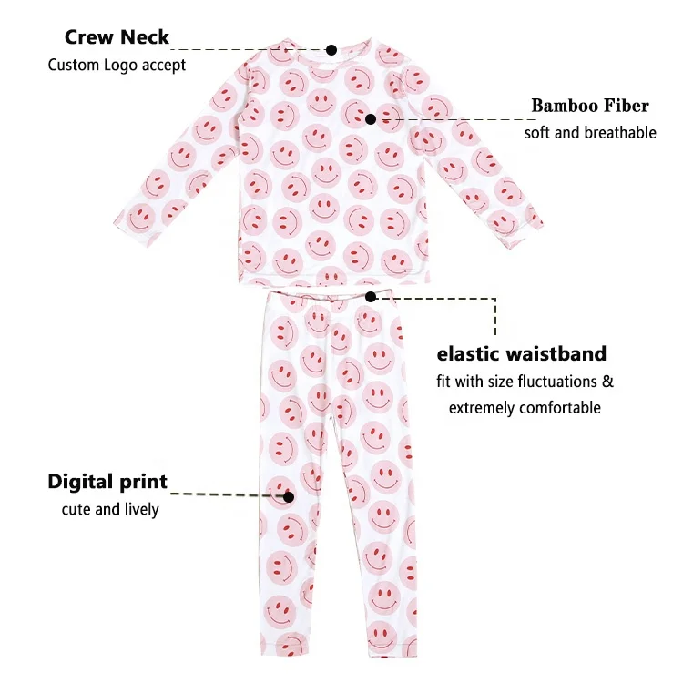 2023 Custom Label Kids Clothes Summer Bamboo Fiber Elastic Waistband Digital Print Baby Pajama Set