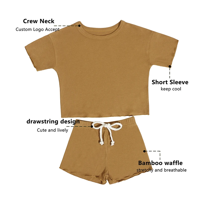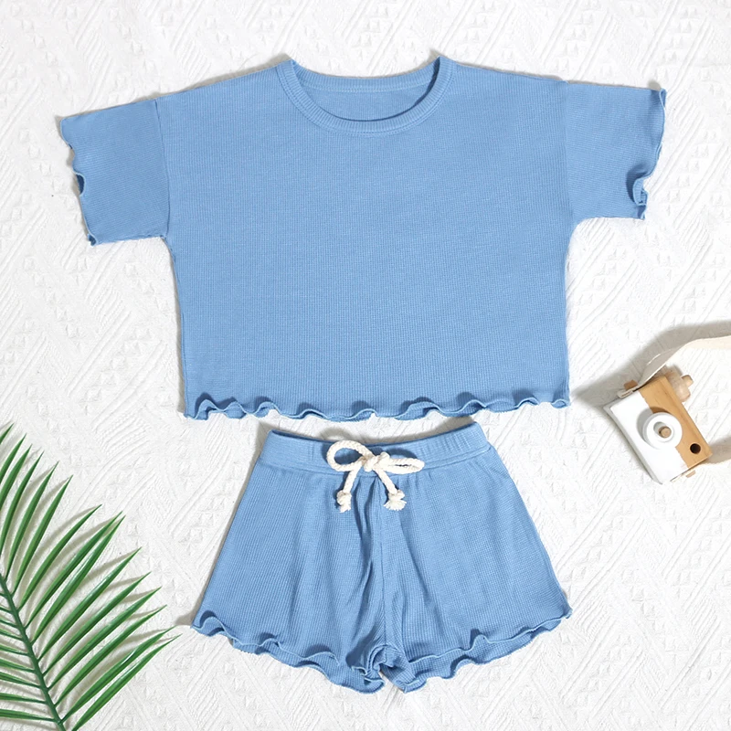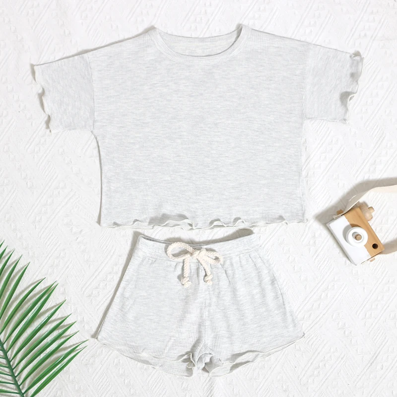 Trendy Style Children Clothing Summer Children Solid Color Short-Sleeved Shorts and Child Clothing Set