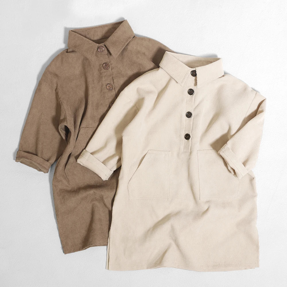 2026 New Kids Long-sleeved Dress Children's Casual Custom Embroidered Crew Neck Solid Color Girls Dresses