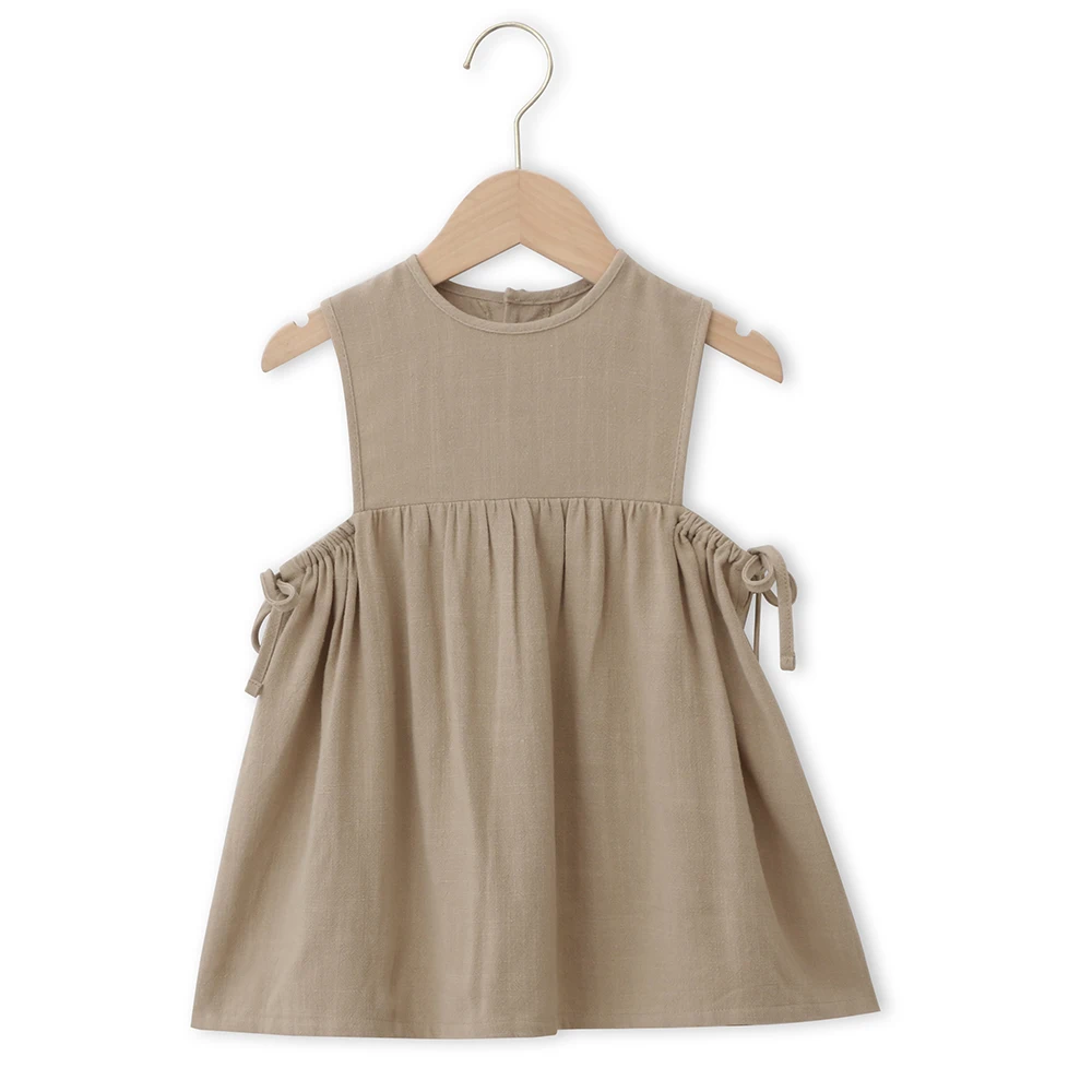 New Style Multiple Summer Crew Neck Lightweight and Sweet Elastic High-Waist A-Line Infant Girls Dresses