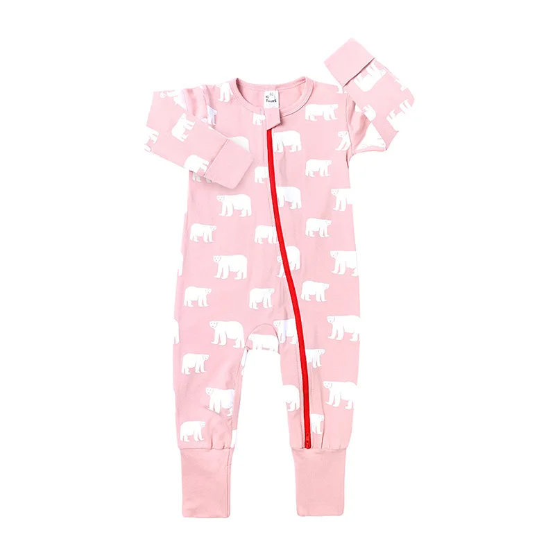 Custom Winter Toddler Printed Long Sleeve Onesie Jumpsuit Bamboo Zipper Baby Romper