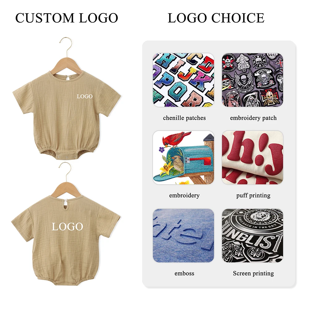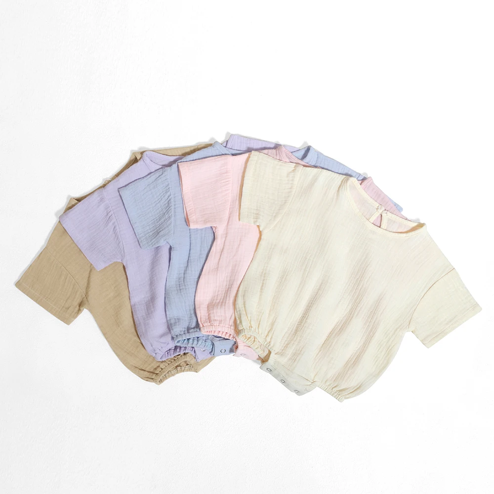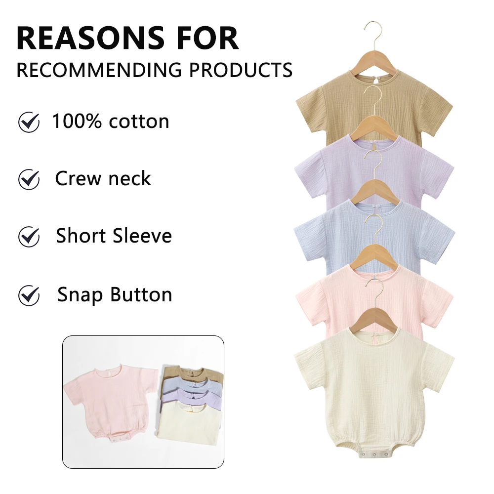Newest Selling Baby Short Sleeves Summer Crew Neck Comfortable Cotton Baby Rompers with Snap Button Closure