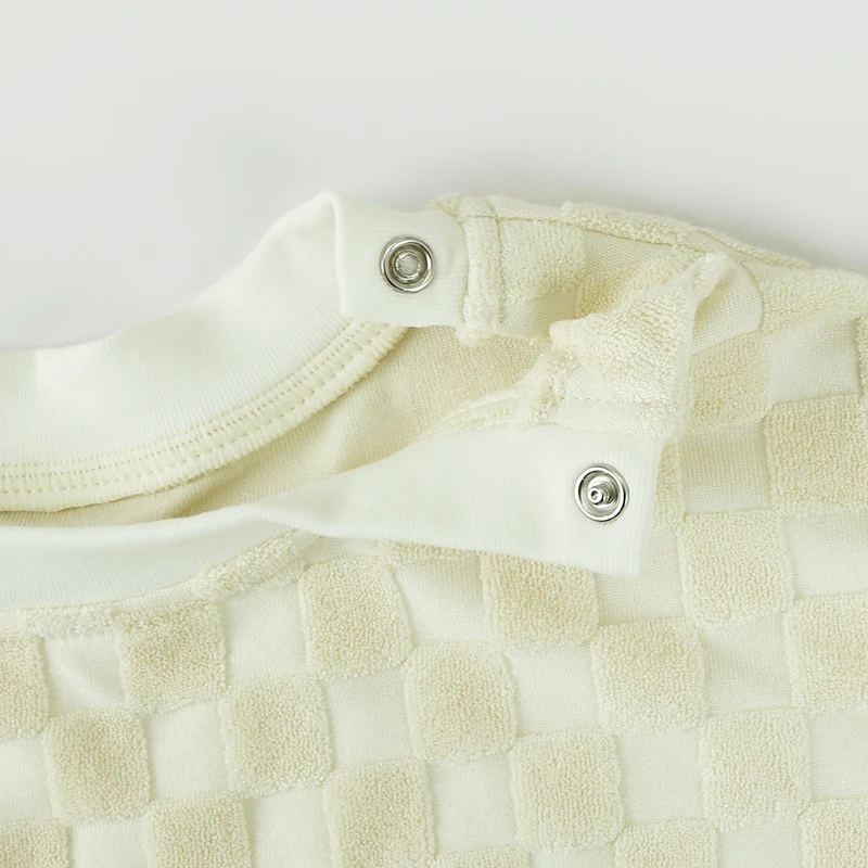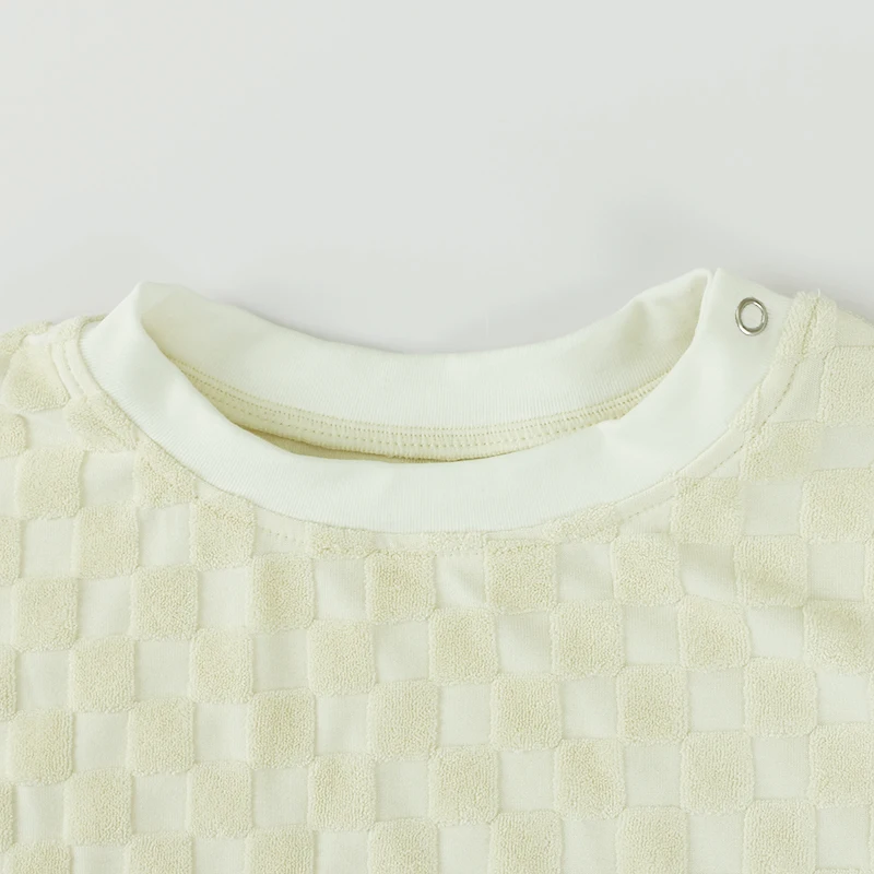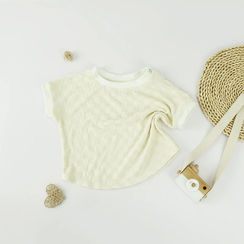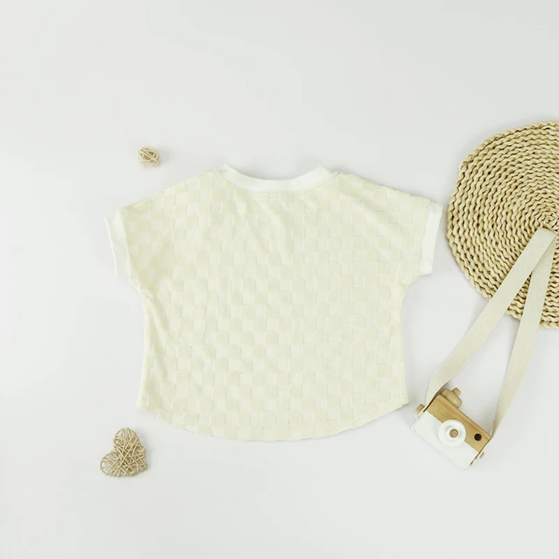 Summer Short Sleeve Clothes Top Checkerboard Towel Cloth Baby Boy T-shirt with Snap Shoulder