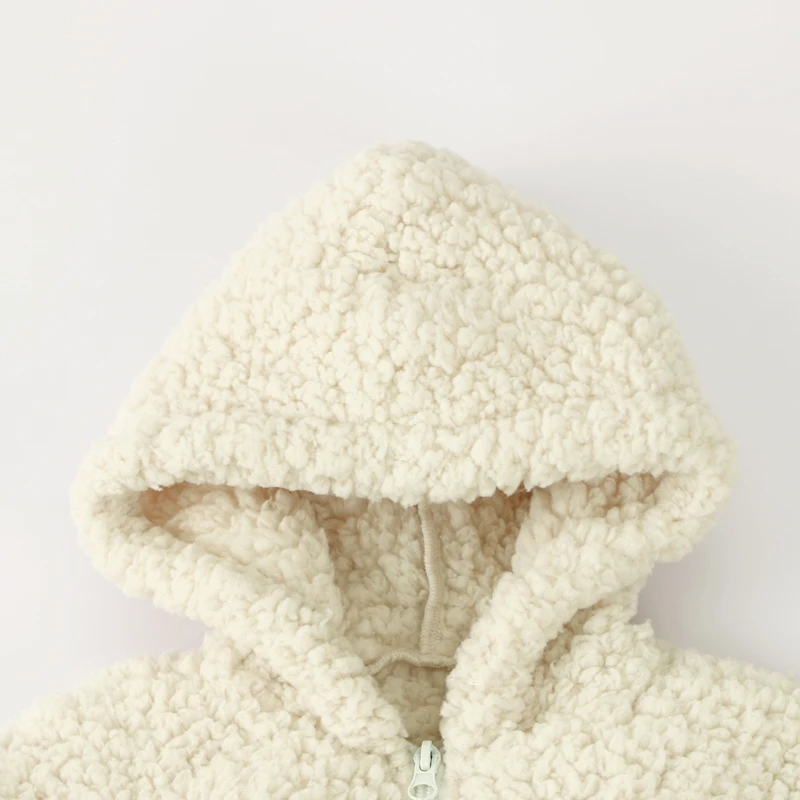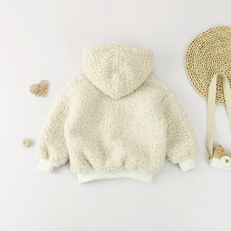 New Design Hoodie Kids Zipper Top Baby Berber Polyester Fleece Hooded Coat With Rib Cuff