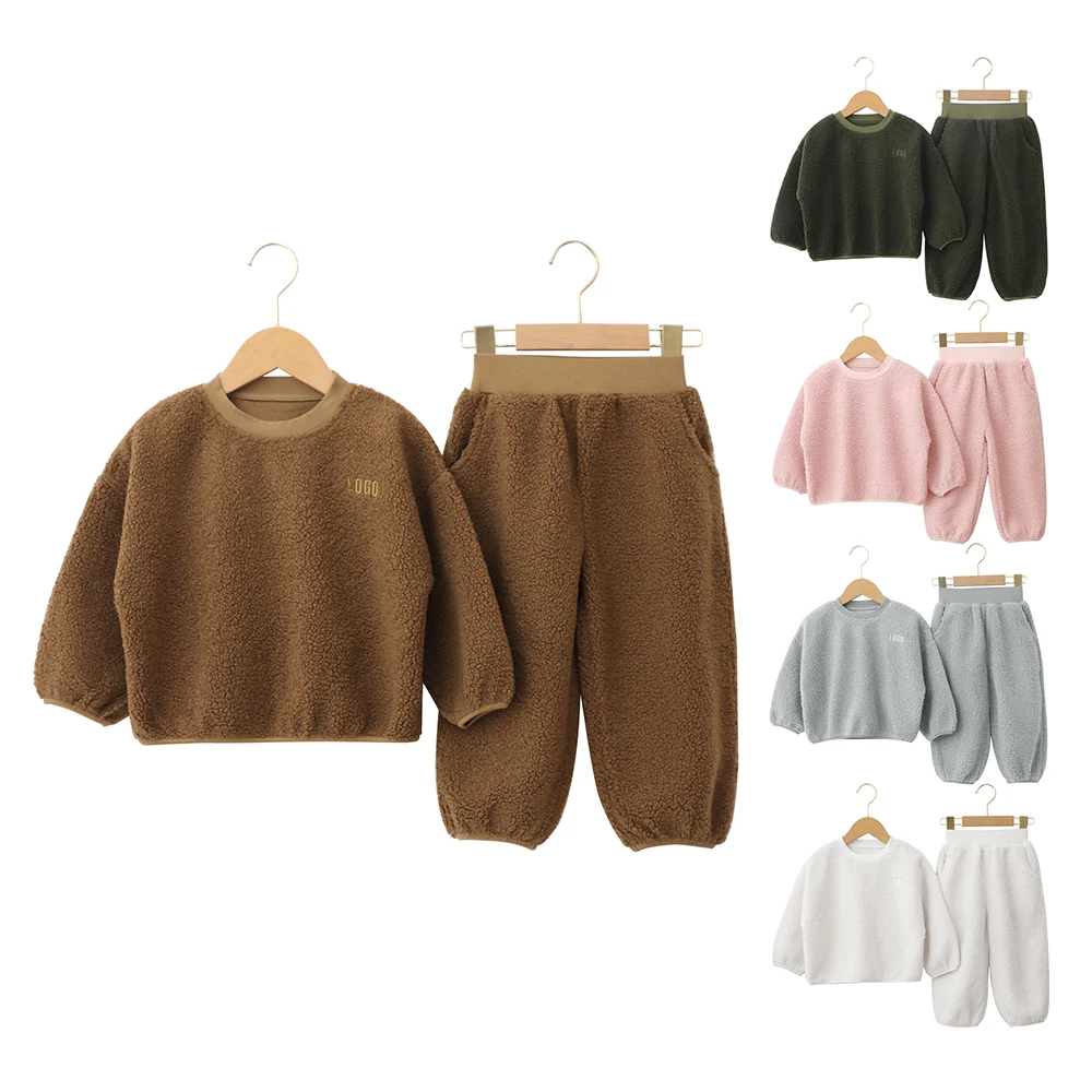 Custom Logo Designer Wholesale Crew Neck Autumn Winter Elastic Waistband Children Girls and Boys Clothing Sets