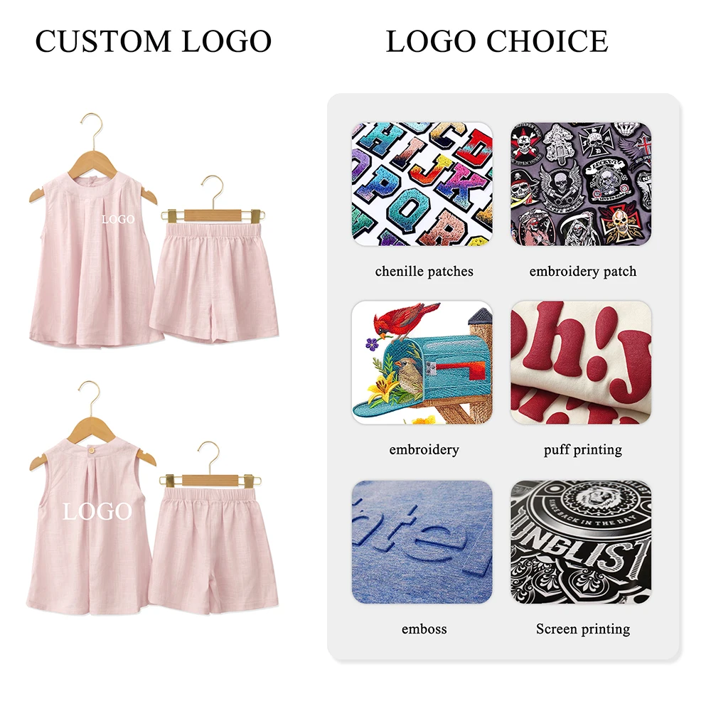 Direct Manufactory Price Cute and Casual Crew Neck Summer Baby 2-Piece Sleeveless Custom Logo Children Clothing Sets
