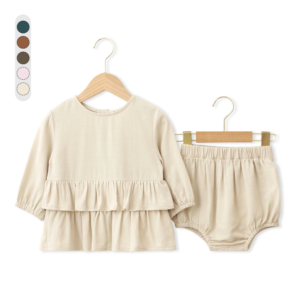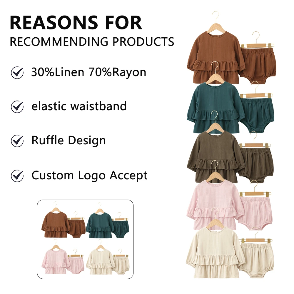 Wholesale Modern Design Summer Long Sleeves Crew Neck T-Shirt and Shorts Toddler Baby Girls Boys Clothing Sets