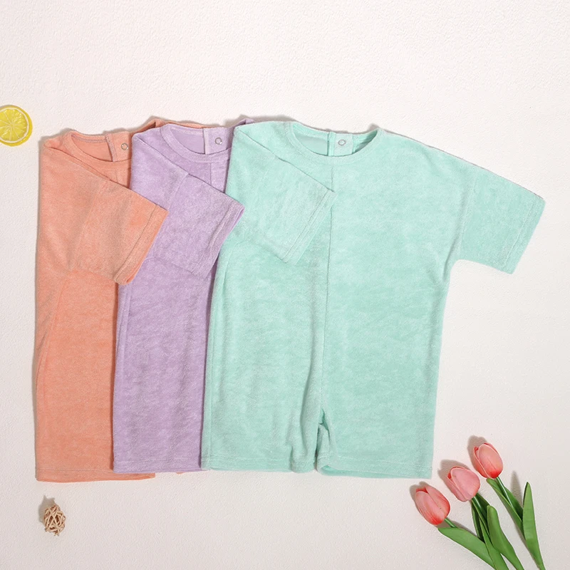 Custom Design Summer Newborn Infant Jumpsuit Short Sleeve T-shirt Knitted Snap Button Baby Rompers Set