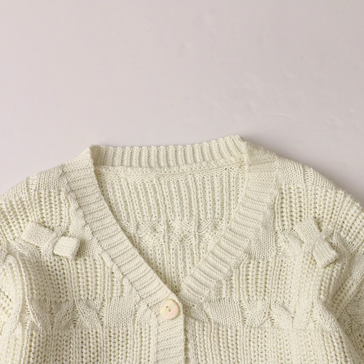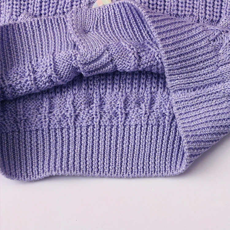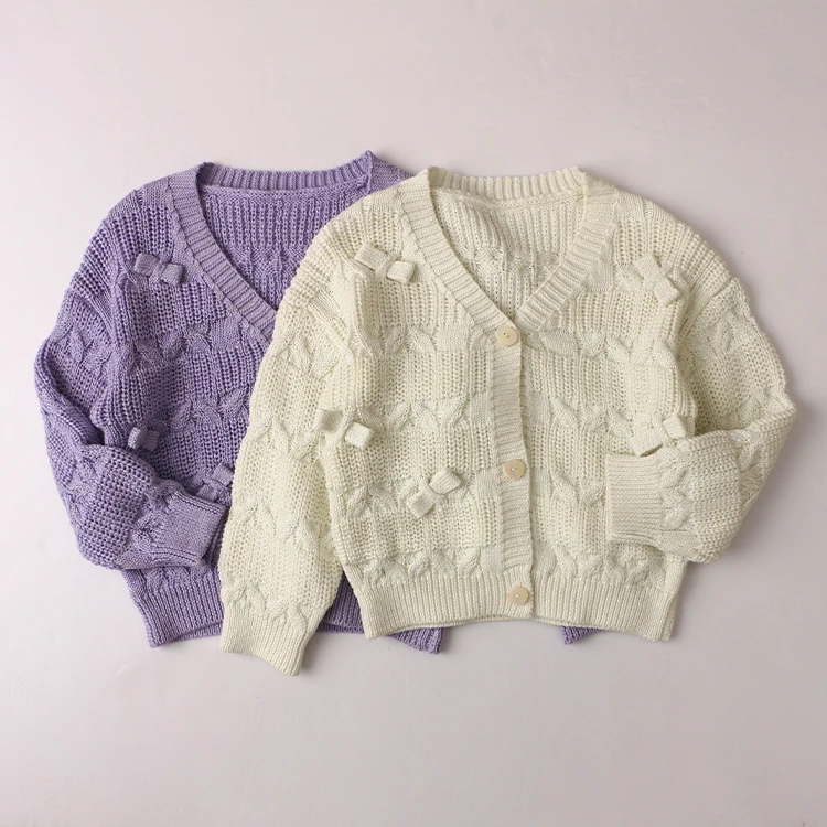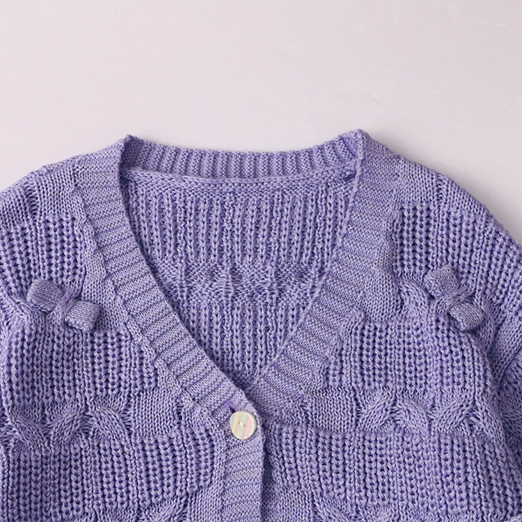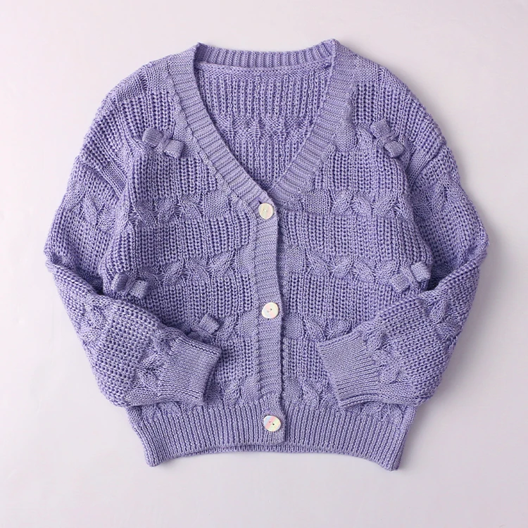New Design Baby Knitted Sweater Purple Cardigan Coat Baby Girls Long Sleeve Sweater Bow Solid Color Coat