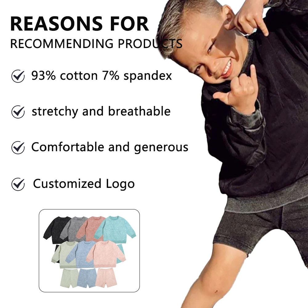 Competitive Price Spring Long Sleeve Crew Neck Elastic Waistband Customized Design Causal Kids Clothing Set