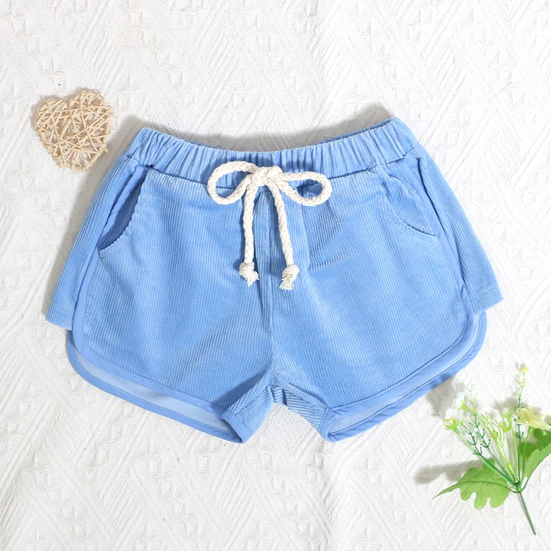 Excellent Quality Wholesale Children Summer 98%cotton 2%spandex Corduroy Drawstring Design Baby Short Pants