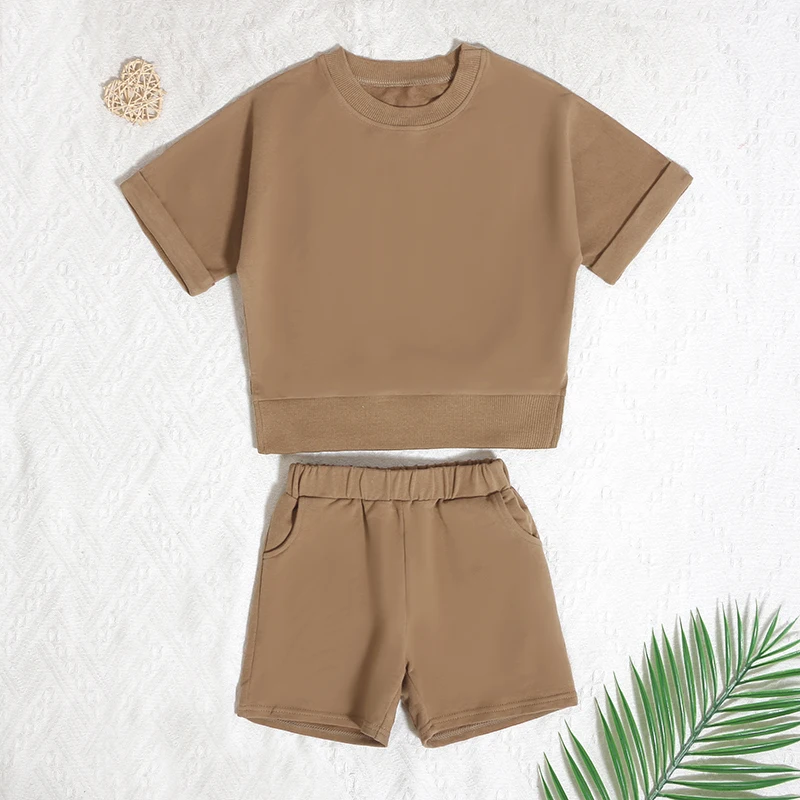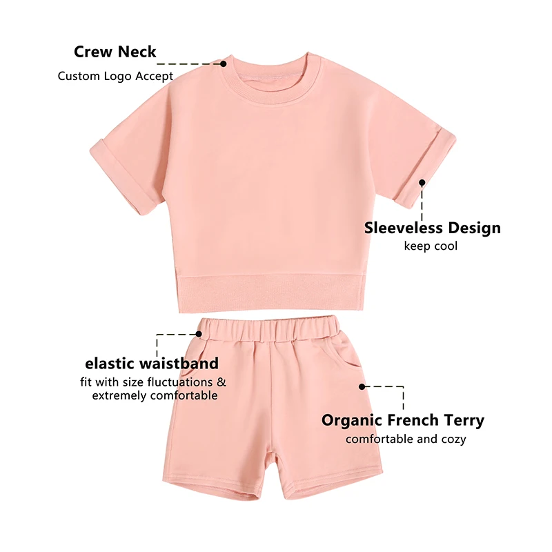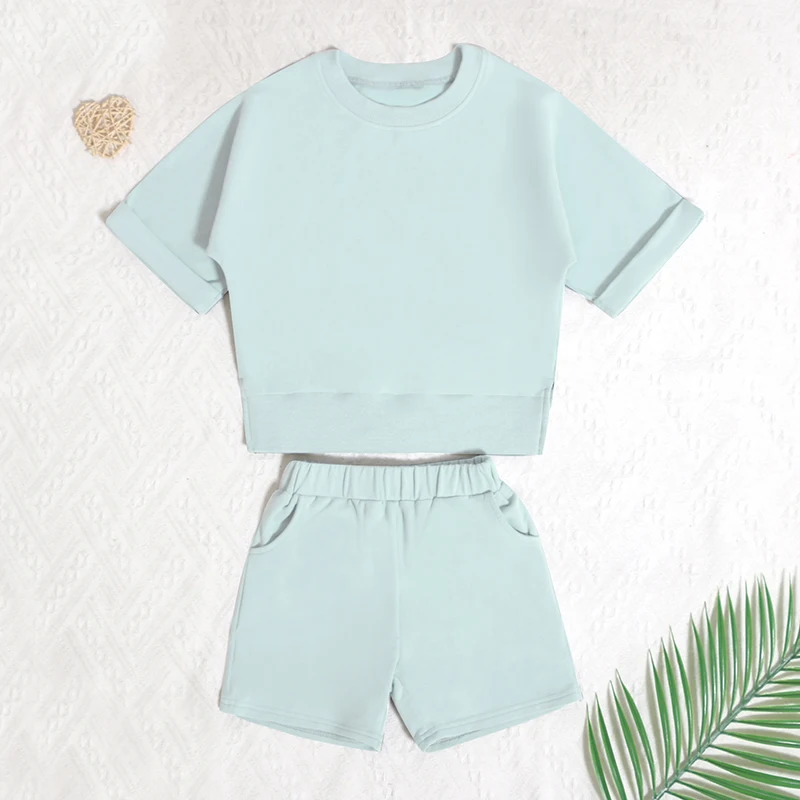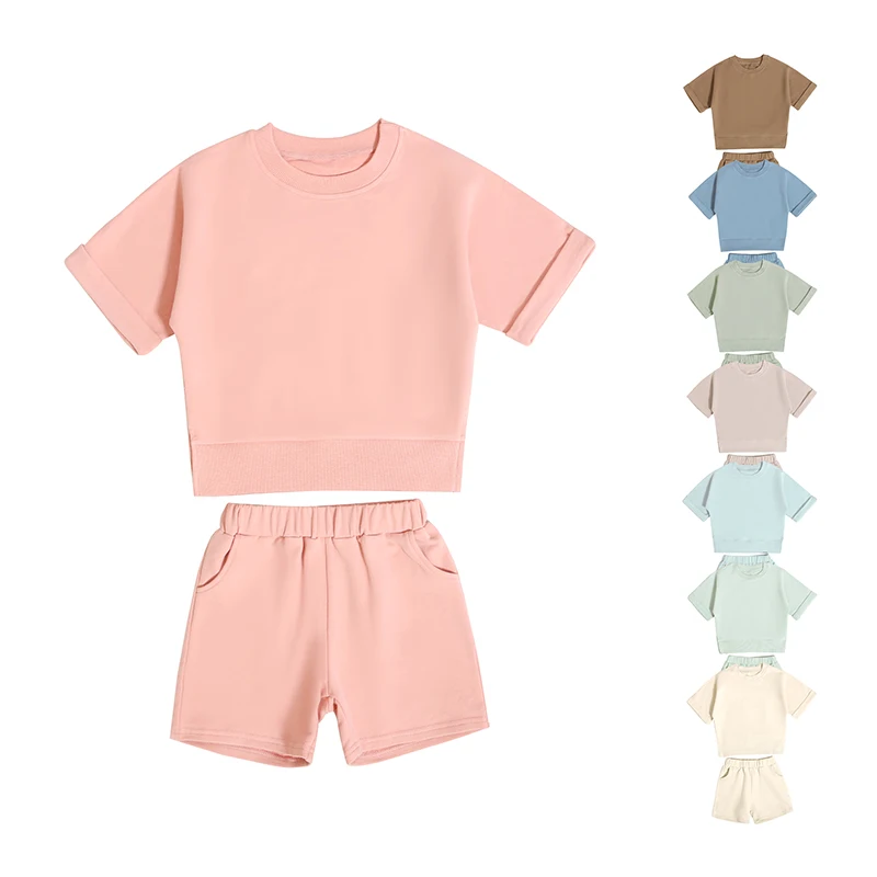 New Style Multiple Organic Cotton Kids Sweatsuit Summer Crew Neck Cool Short Sleeve Baby Sets Clothes