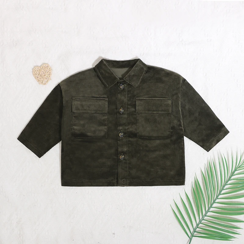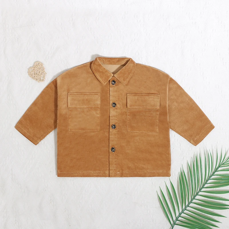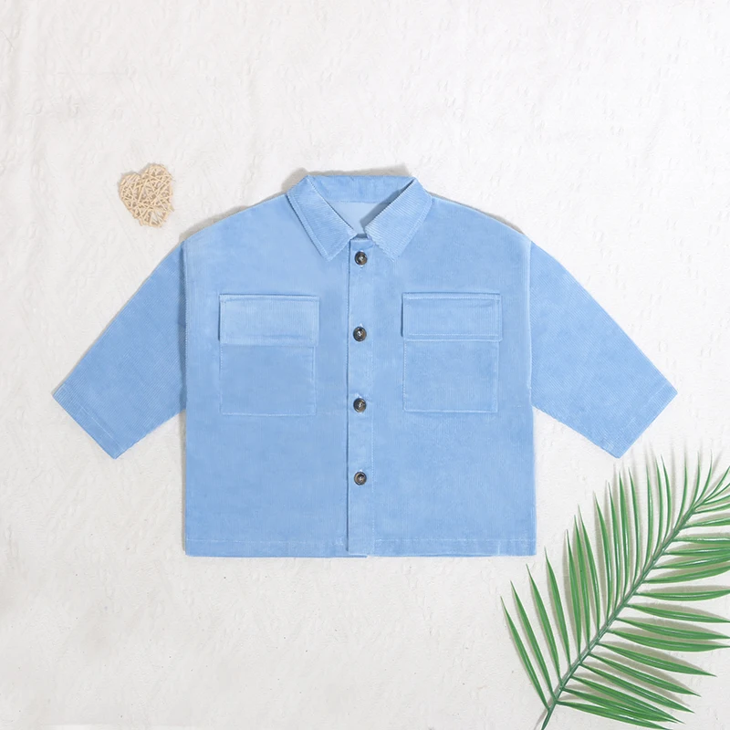 New Designer Trendy Custom Fashion Kids Clothes Solid Color Spring Long Sleeves Button Children Clothes Tops