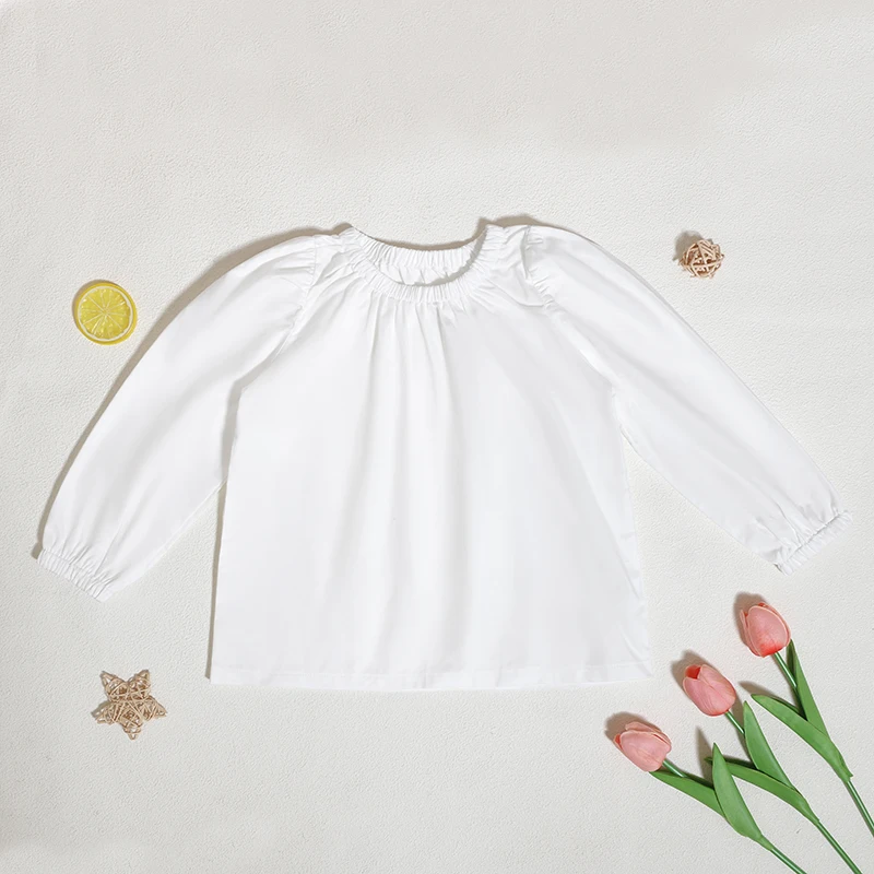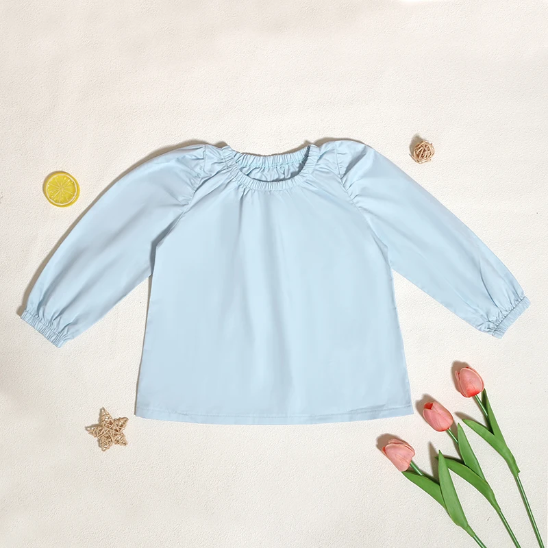 Customized Good Quality Spring Solid Girls Kids Shirt Cute Long Sleeve Knitted Children Blouse Shirt