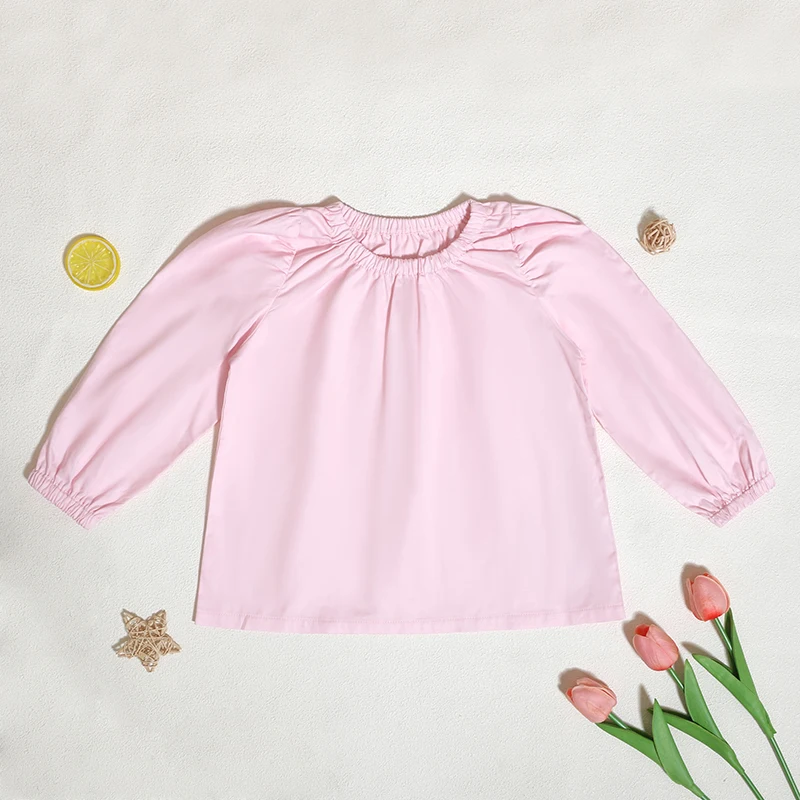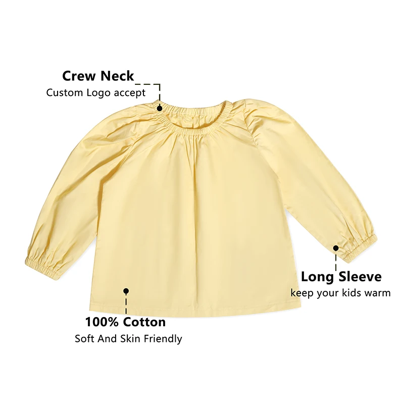 Professional Manufacturer Custom Logo New Spring Crew Neck Long Sleeve Baby Blouse Girls Kids Casual Shirts