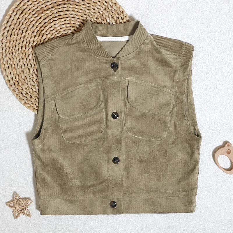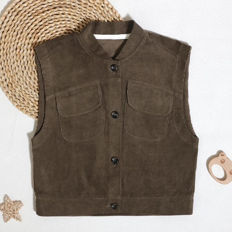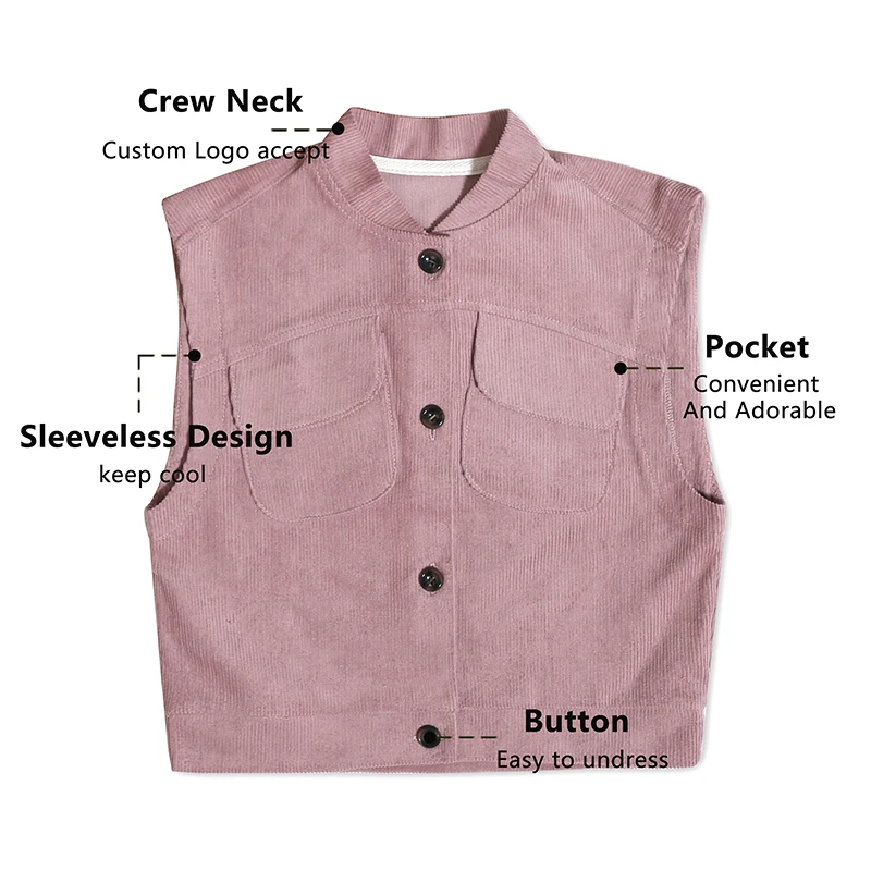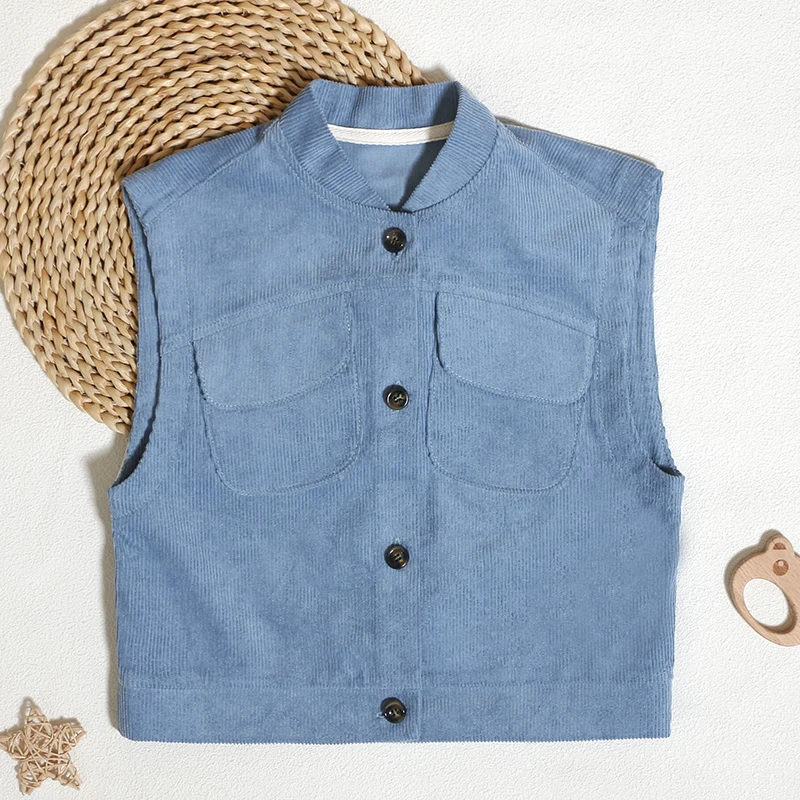 Wholesale Hot Sale Classic Customized Thick Coat 100% Cotton Custom Sleeveless Children Tops With Button