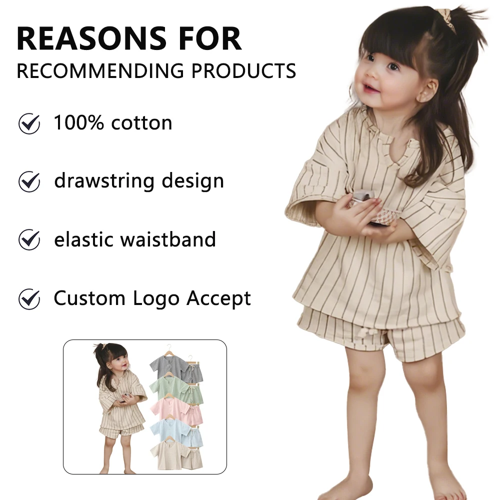 Newest Selling Fashion Summer Casual Short Sleeved Elastic Waistband Shorts Children's Baby Home Wear Set