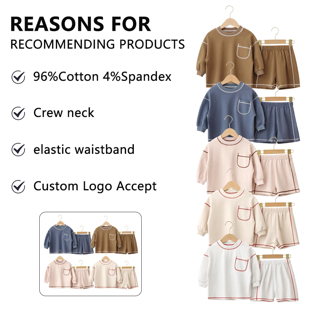 Wholesale Custom Oem China Kids Two Piece Spring Crew Neck Elastic Waistband Shorts Baby Set Clothing