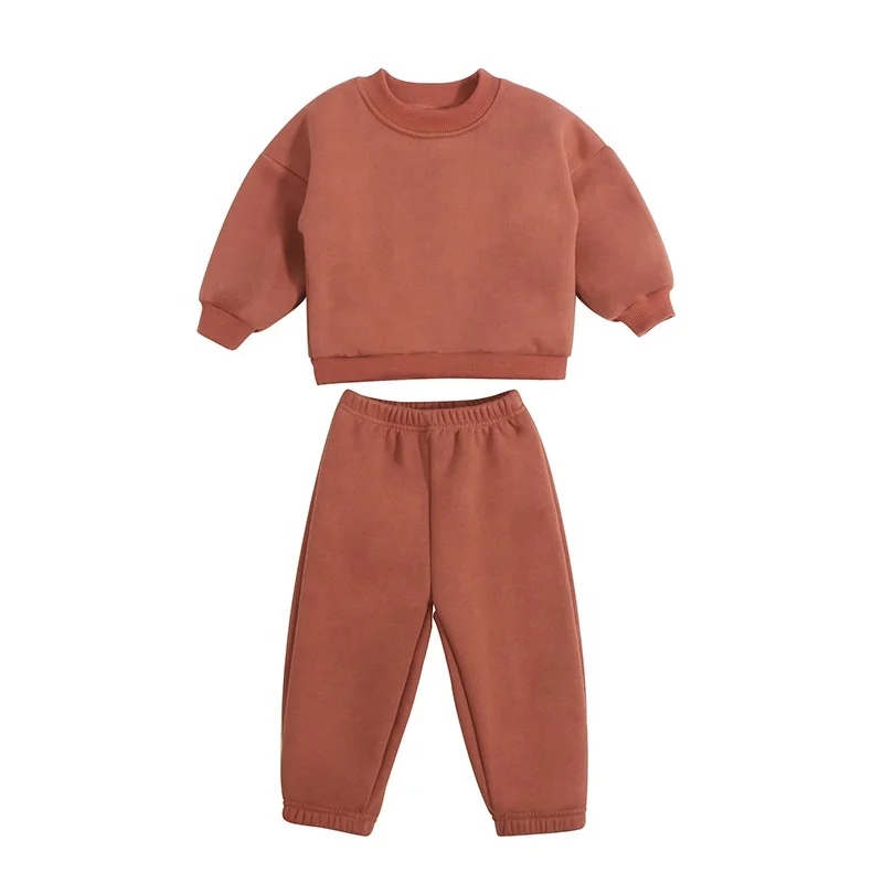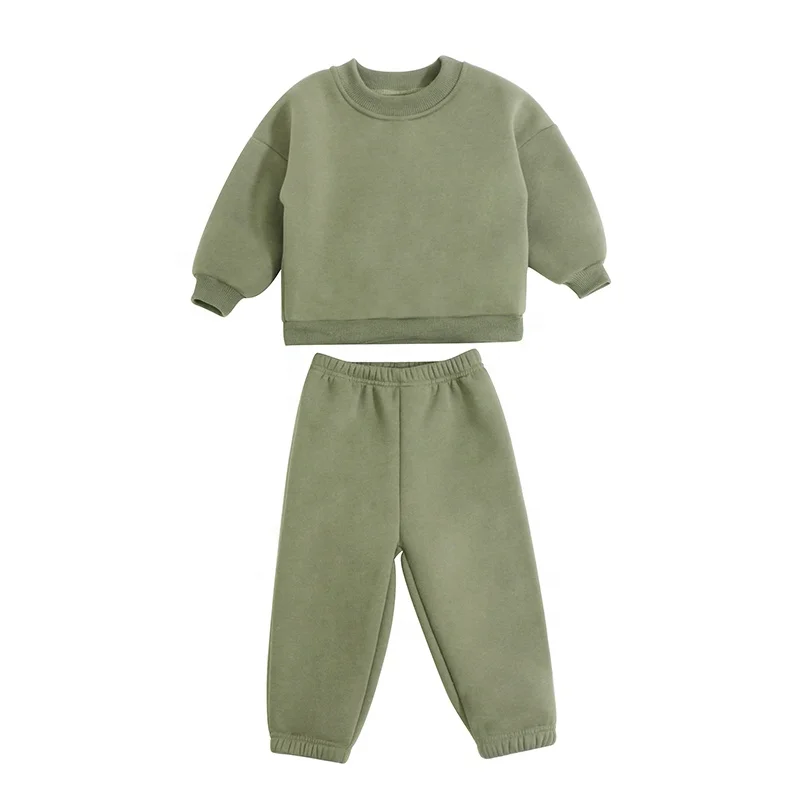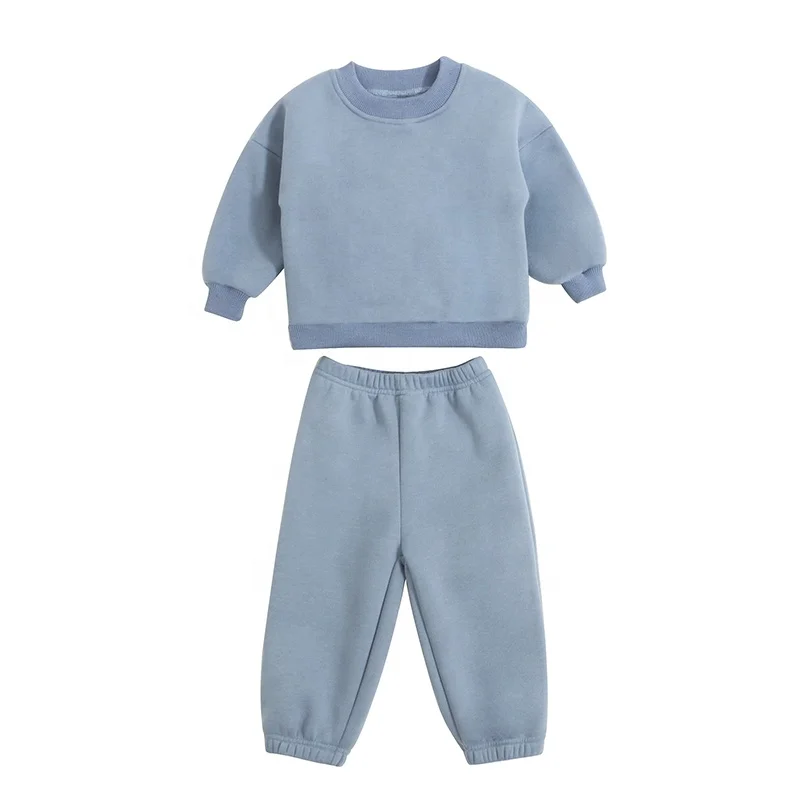 Custom Logo Baby Tracksuit Set Cotton Fleece Terry Kids Sweatsuit Long Sleeve Baby Set Clothes