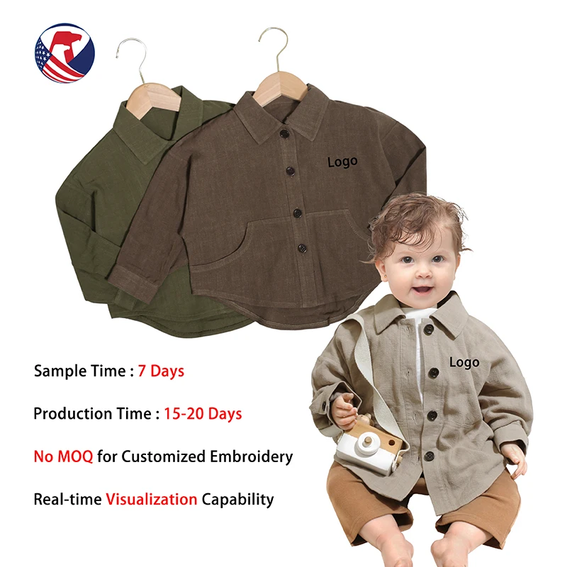 Wholesale Custom Logo Autumn Fashion Baby Boy Shirts Long Sleeve Cotton Solid Shirt Casual Kids Boys Tops Shirts
