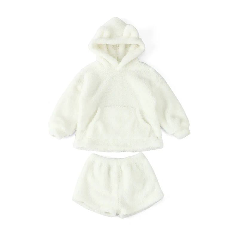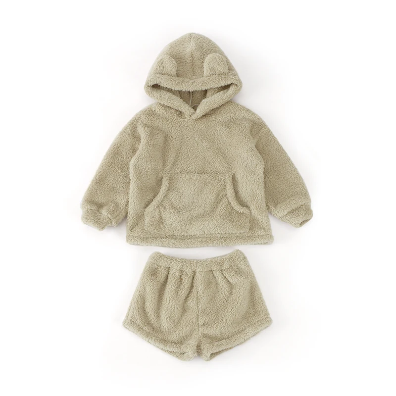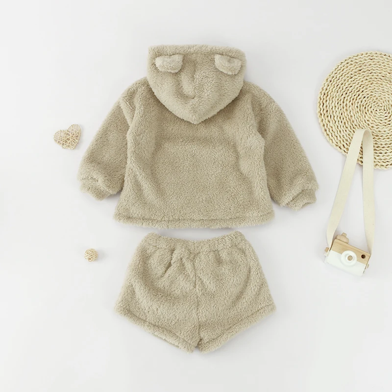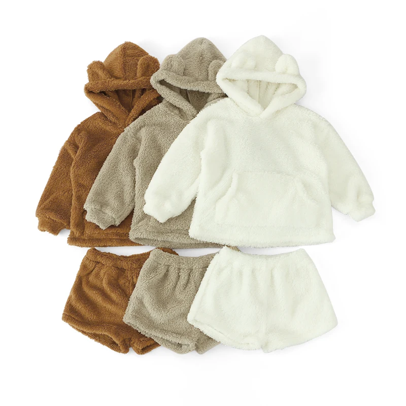 Custom Double Faced Velvet Cotton Baby Outfit Thick Winter Two Piece Hooded Kids Tracksuits Sets