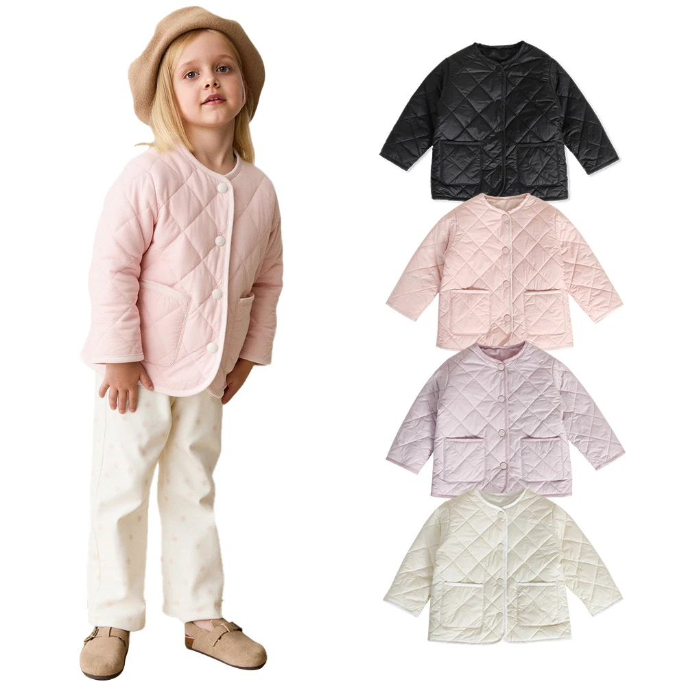 Warm Polyester Quilted Girls' Jacket - Solid Color Sleeveless for 3-12 Years