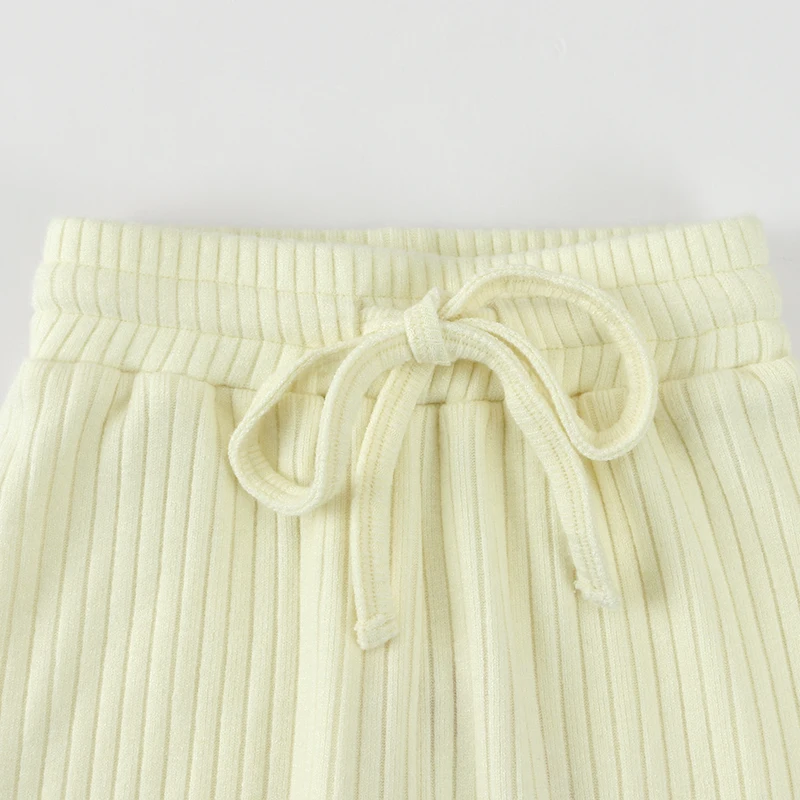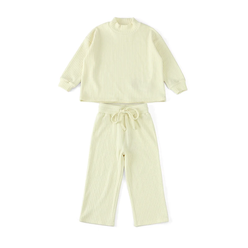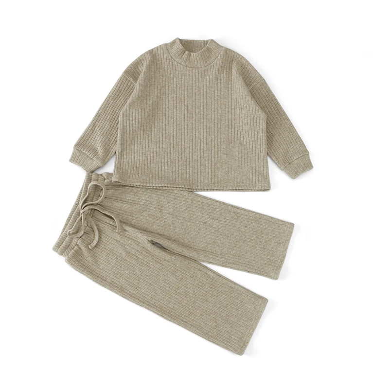 Winter Newborn Baby Boy Girl Clothes Set Ribbed Outfits Unisex Infant Solid Cotton Long Sleeve Tops Pants 2PCS