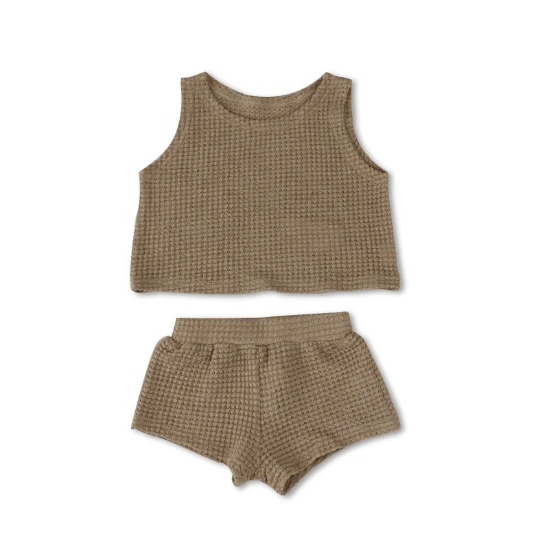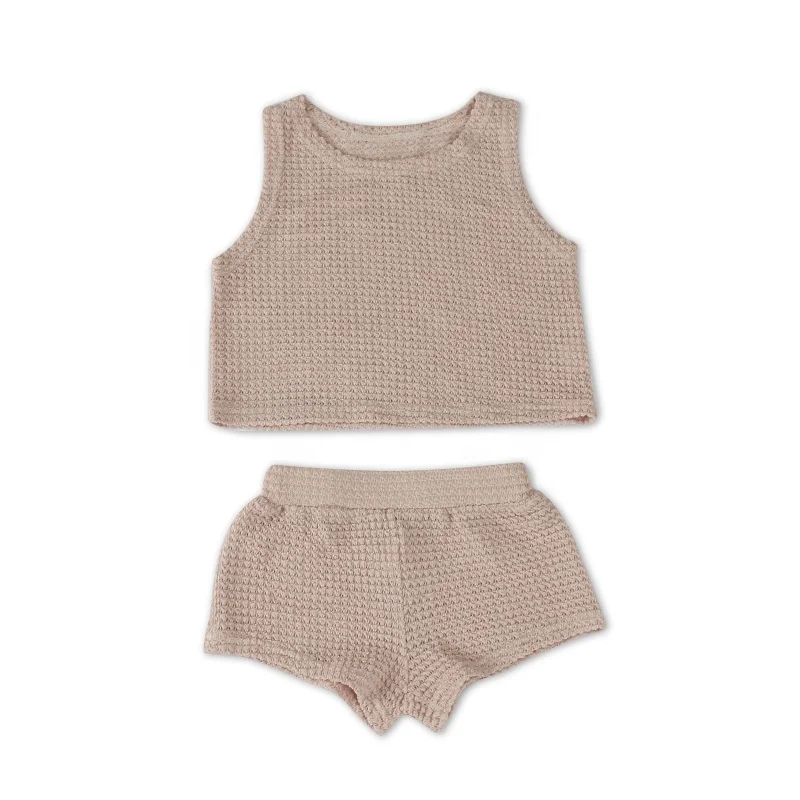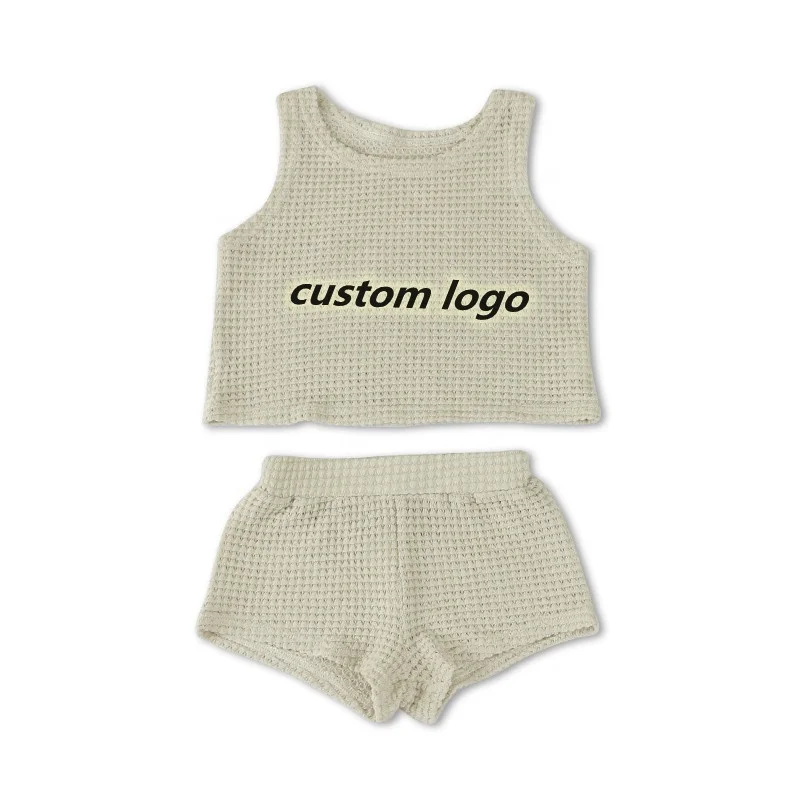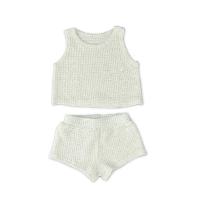Custom New Design Ribbed Baby Set Hollow Knitted Comfortable Kids Summer Clothe Set
