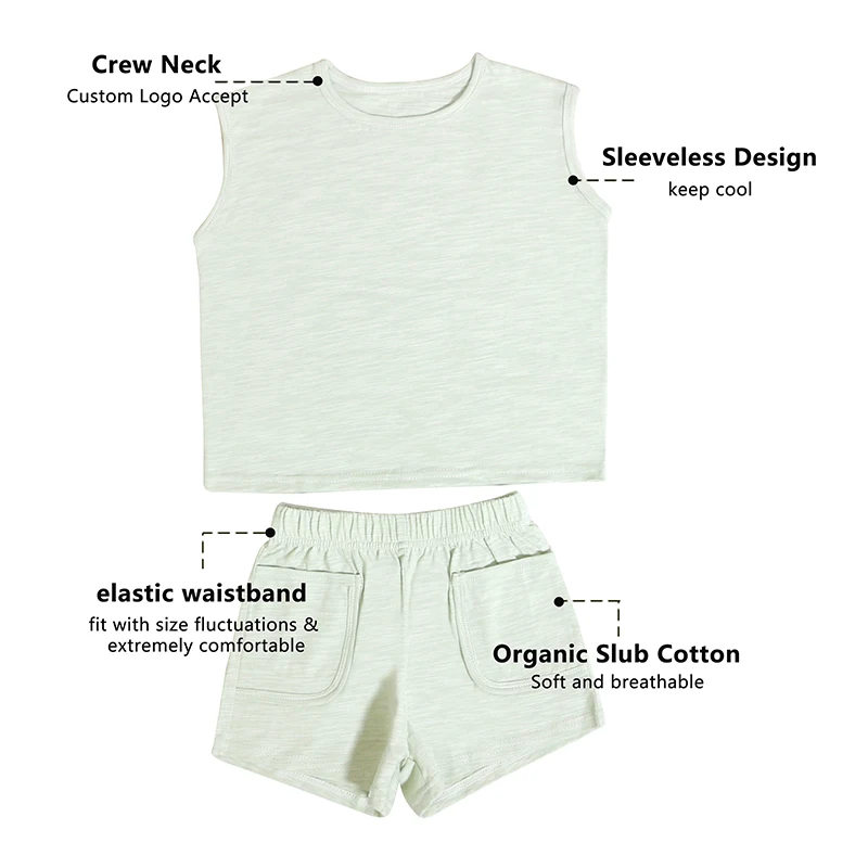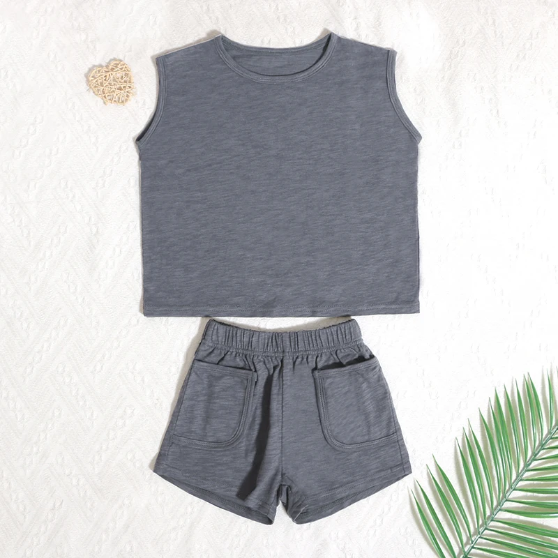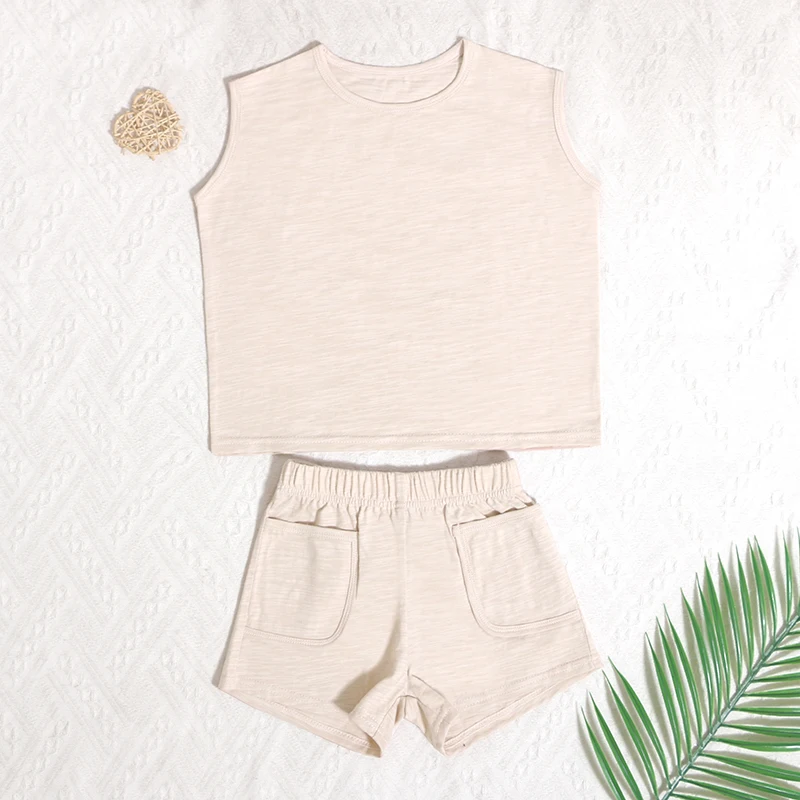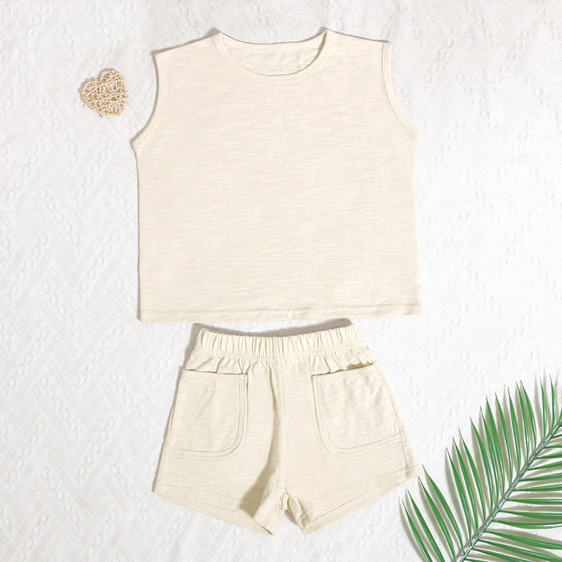 Trending Hot Unique Products Summer Organic Cotton Sleeveless Children Boys Girls Vest 2 Pieces Kids Summer Clothe Set