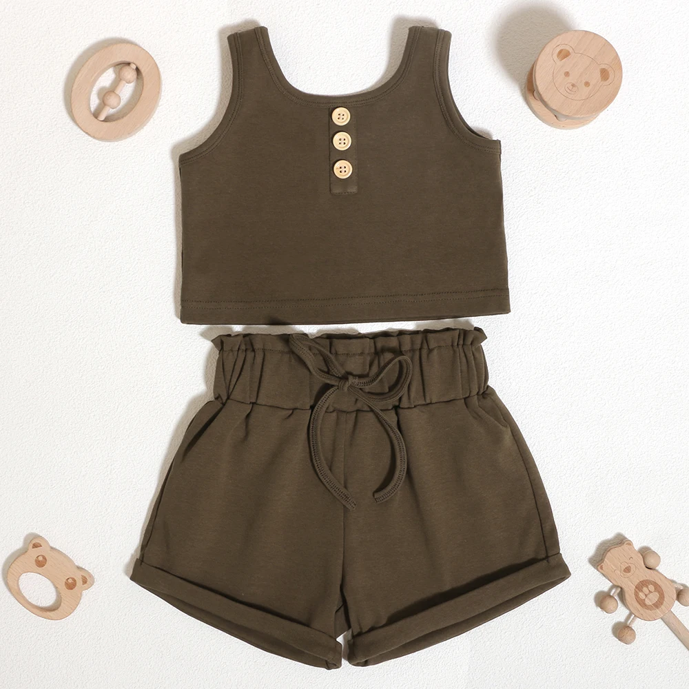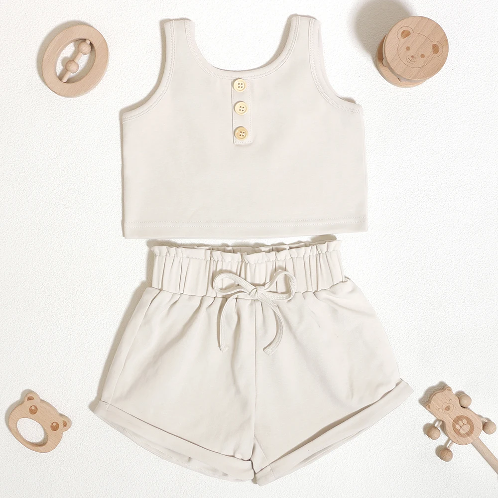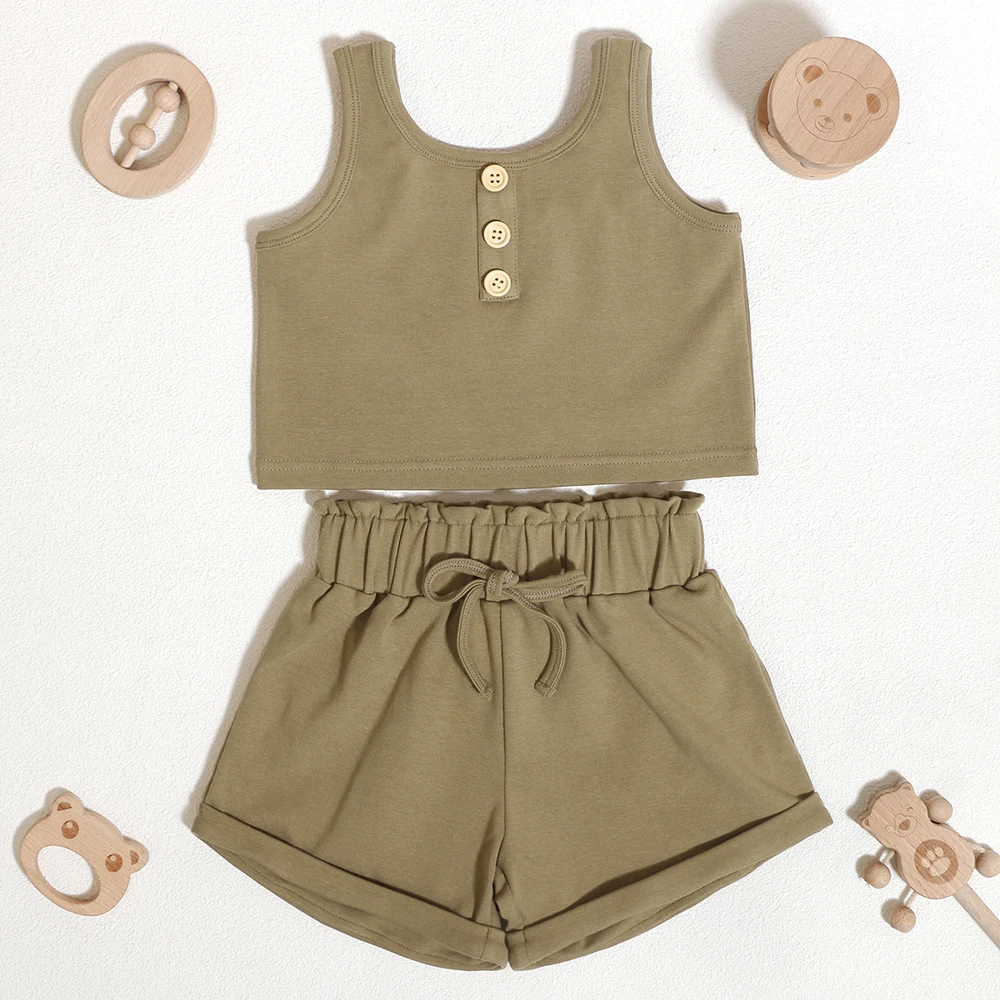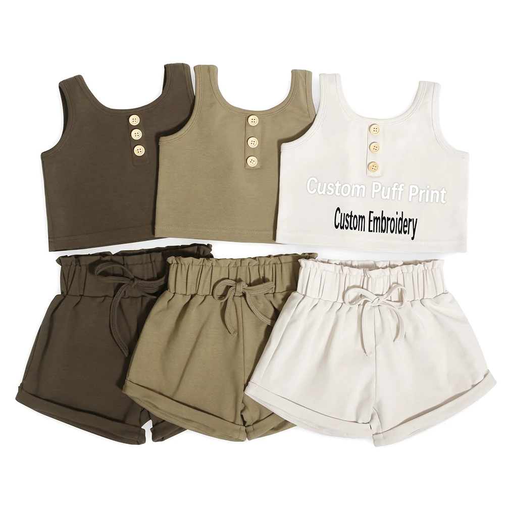 Unique Design Wholesale Children's Gym Wear Summer Outfit Sleeveless Kids Summer Clothe Set With Button Design