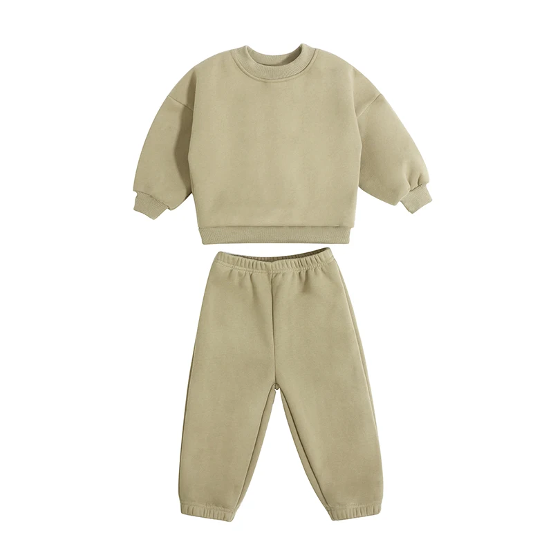 Soft Kids Casual Clothing Set Unisex Child Solid Color Sweatshirt Outfit Baby Plain Tracksuit Kids Sweat Suit Sets