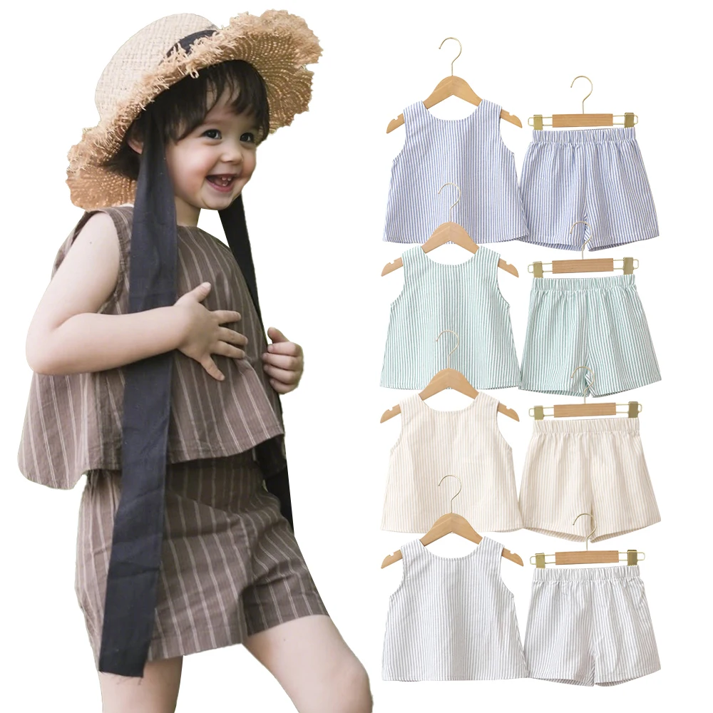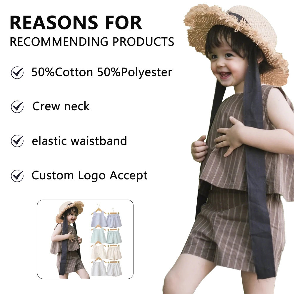 Customized Good Quality Wholesale Crew Neck Summer Girls Cloth With Sleeveless and Shorts Baby Clothing Set