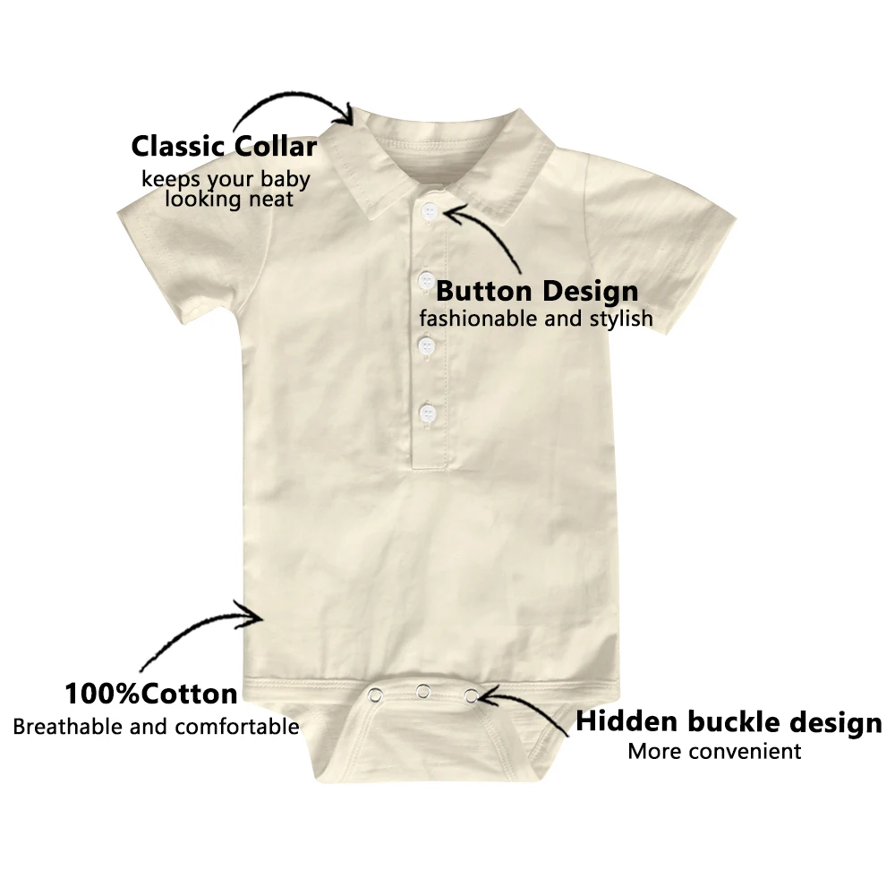 Custom Logo Printing Baby Clothes Jumpsuits Summer Short Sleeves Unisex Infant Newborn Rompers With Snap Button