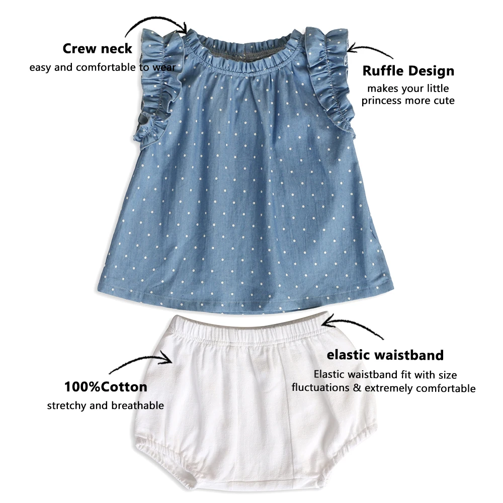 Breathable Soft Customized logo Children Girls Clothing Sets Ruffled Sleeve Children Clothes Set