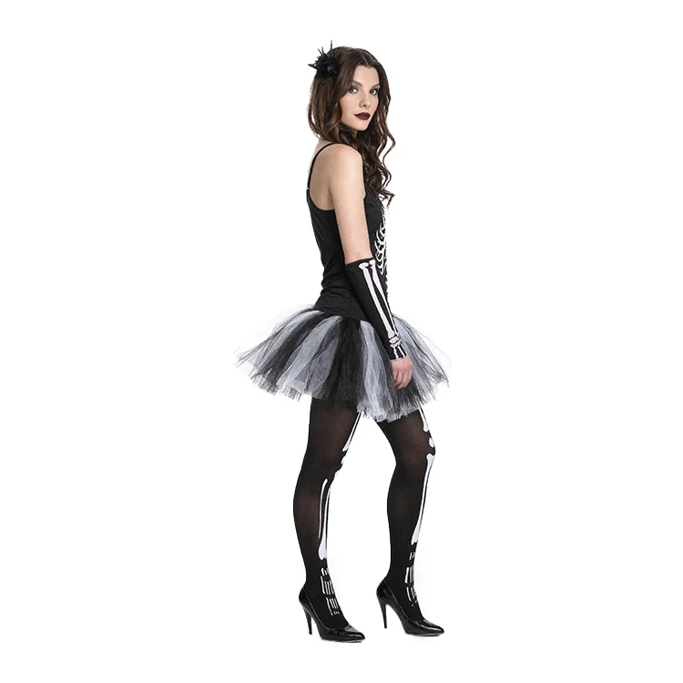 New Female Halloween Skull Bride Costume Black White Ghost Scary Adult Stage Performance Polyester Outdoor Carnival Party Fancy