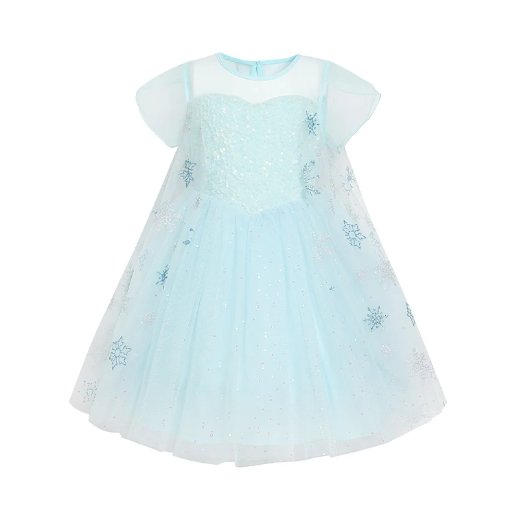 Children's Princess Elsa Cotton Role-Playing Dress-Short-Sleeved Movie Costume for Girls' Christmas