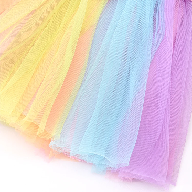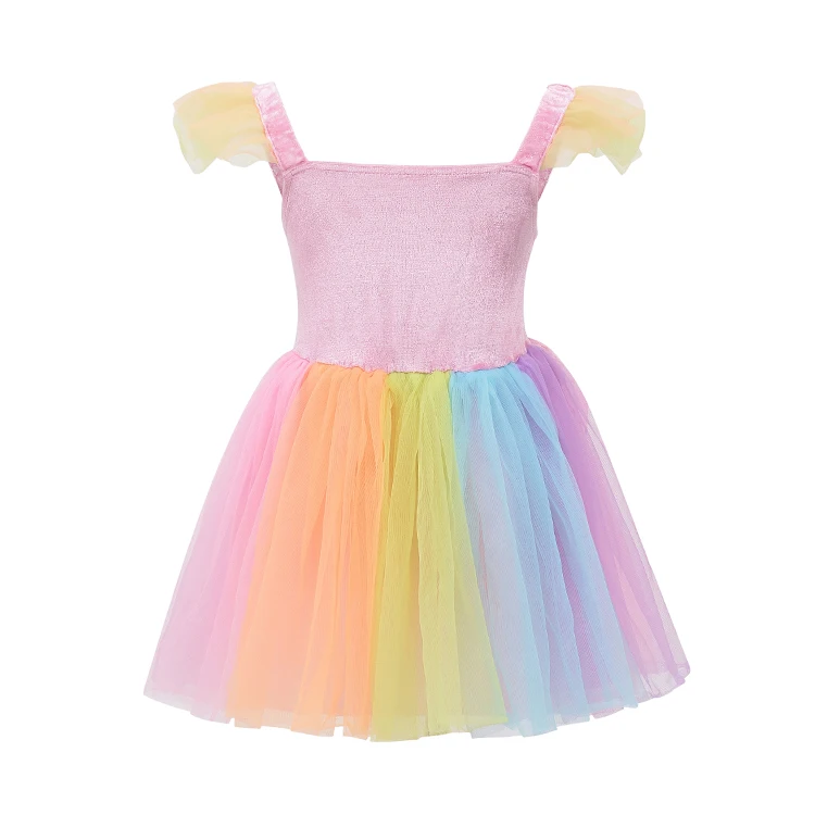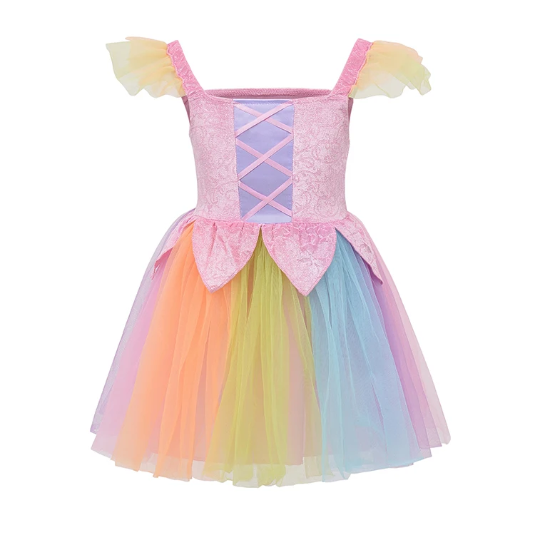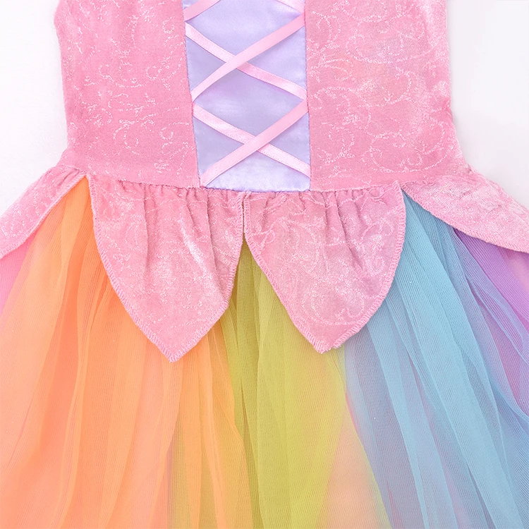 New Design Girls Rainbow Princess Costume Soft Mesh Material for Imaginative Play Children Cosplay Dress