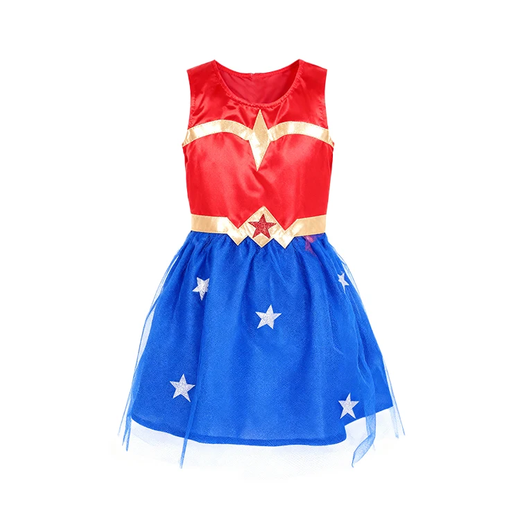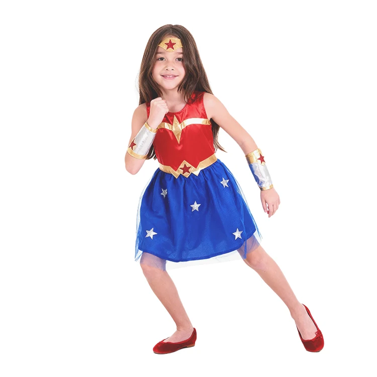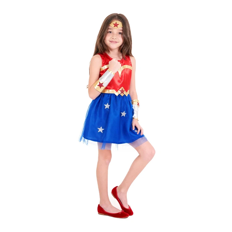Children Heroine Wonder Woman Outfit Satin Fabric Craft Gold Trim Perfect for Cosplay Celebrations