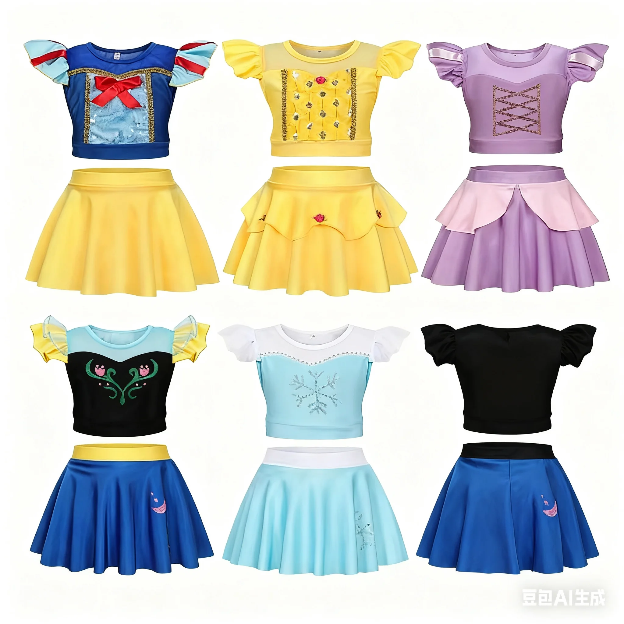 Two-Piece Princess Girls Swimwear Tankini Set Factory-Direct Summer Surf Beach Bathing Suits with Ruffles for Kids