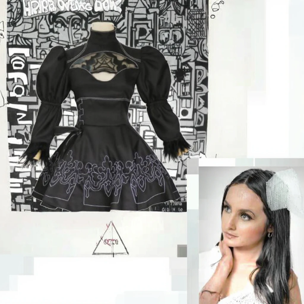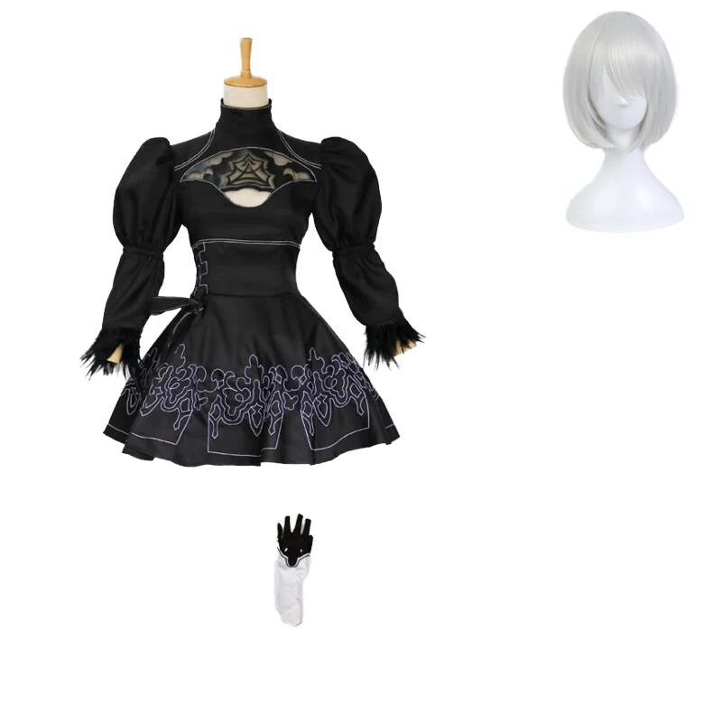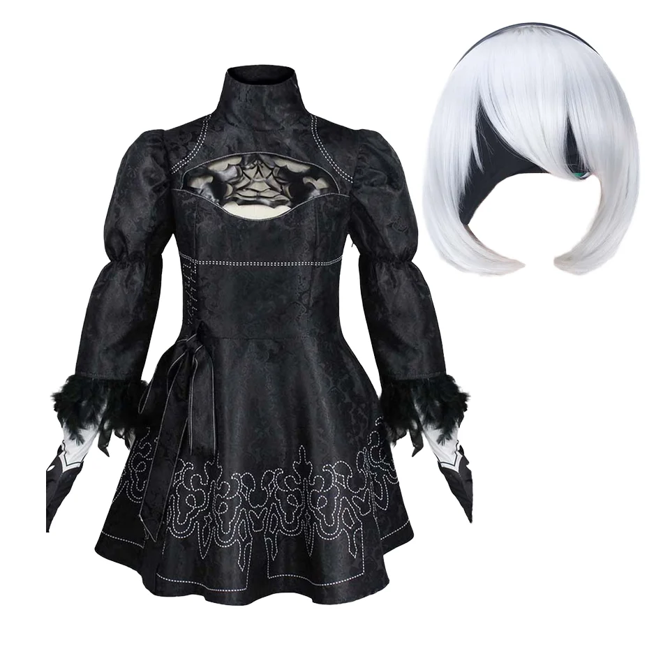 Anime Nier Automata 2B Sisters Cosplay Costume Set Neil Mechanical Era Black Sexy Short Skirt Dress Girls Adult Polyester